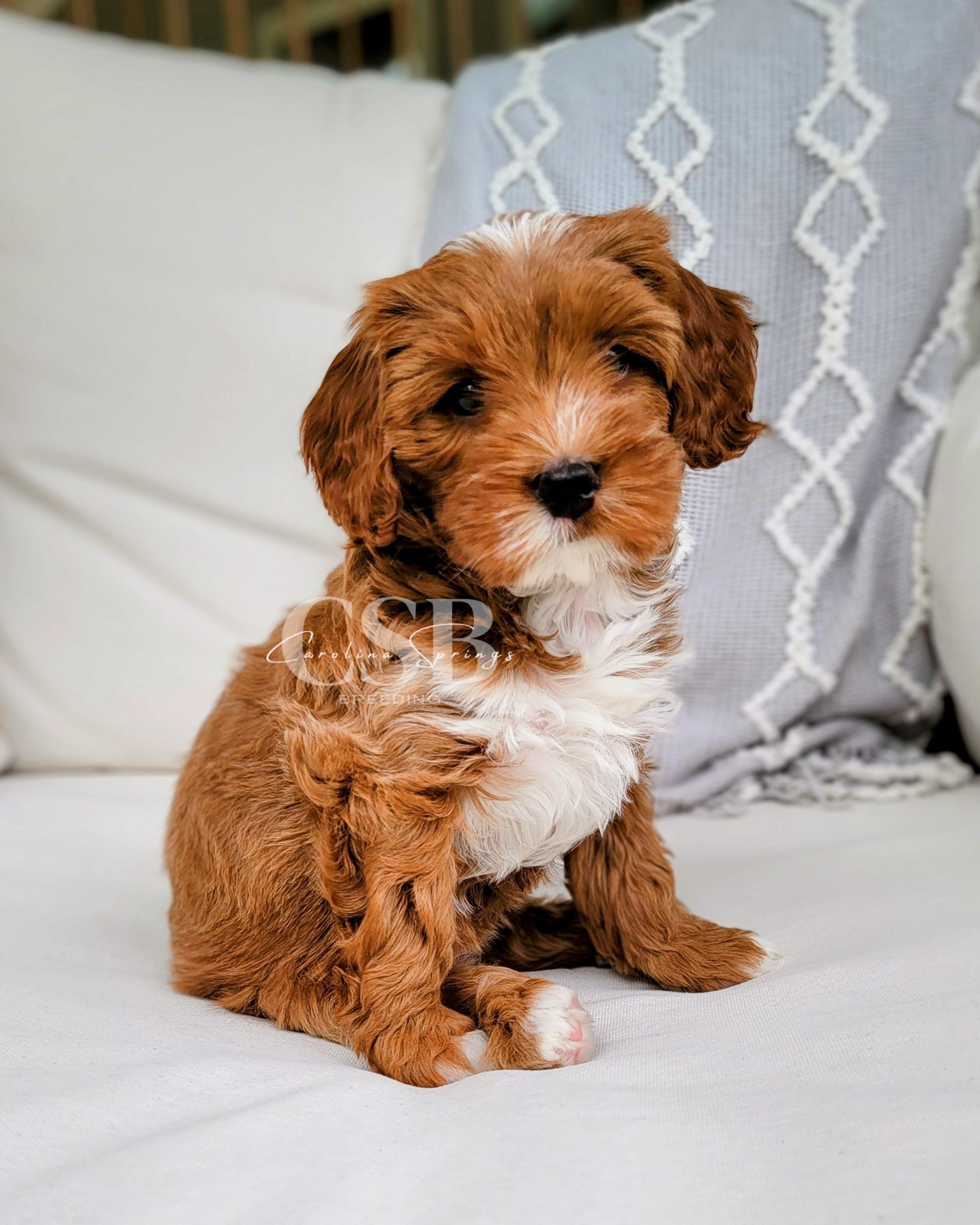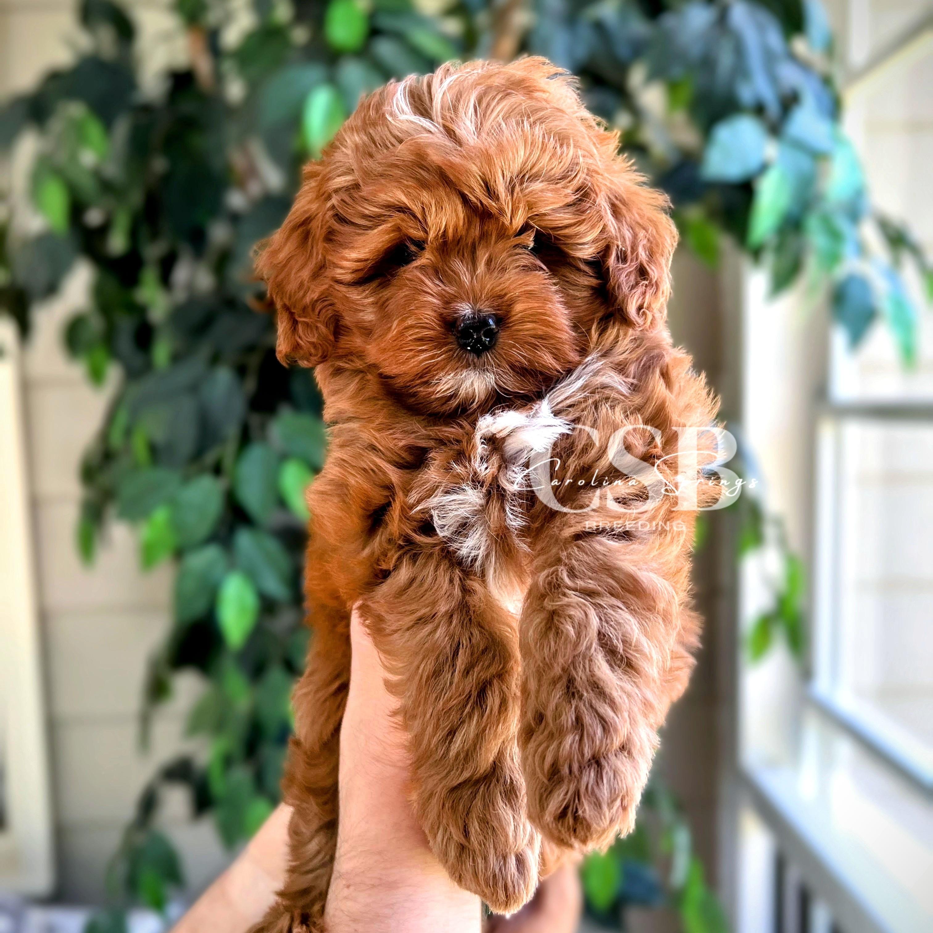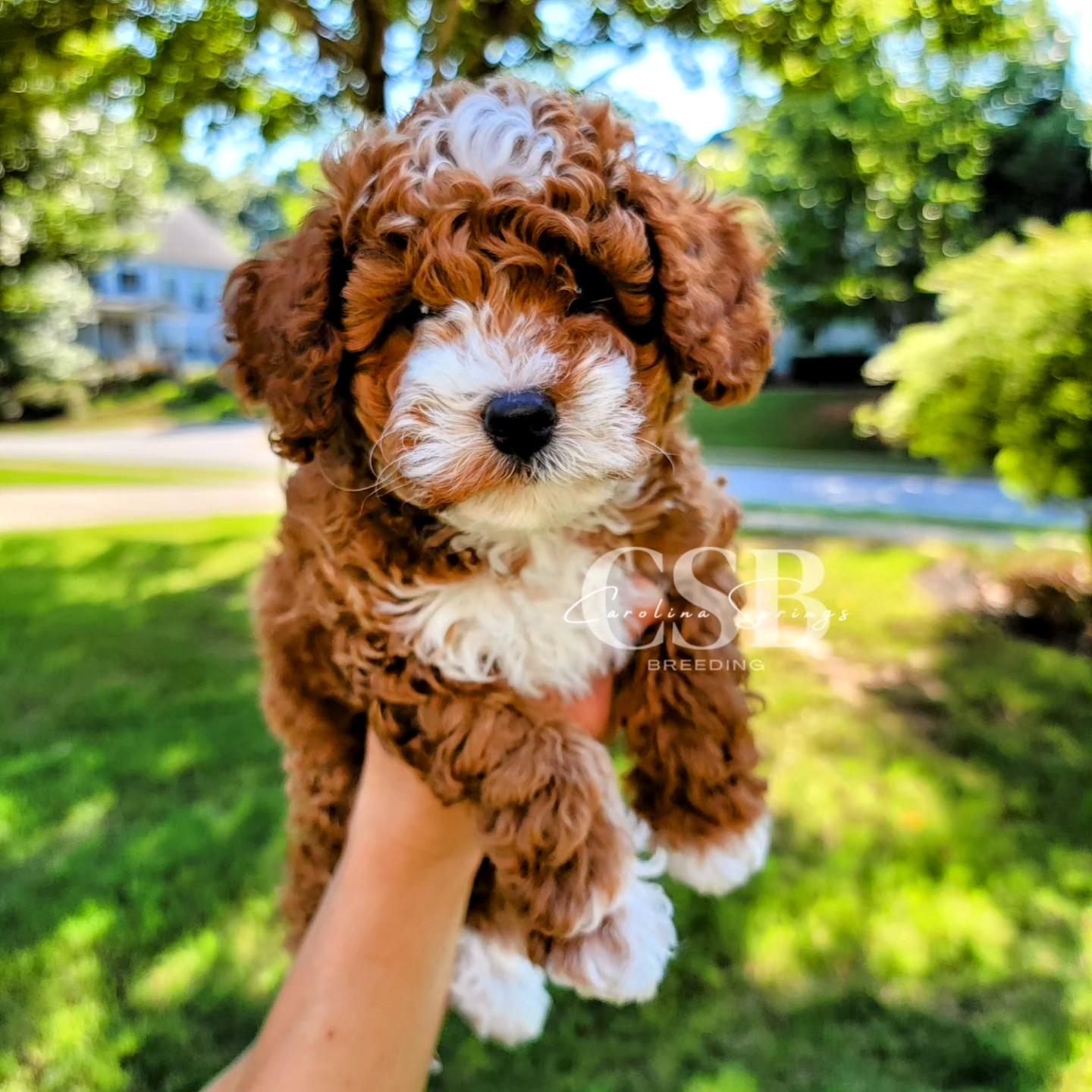 At Carolina Springs Breeding, we prioritize the health of our puppies and breeding dogs, while also considering temperament and appearance. Our red Cavapoos with white markings are adorable, but we emphasize health and temperament over looks. Our puppies are raised in our home with socialization to new experiences, and we continually seek to learn and improve our practices.
