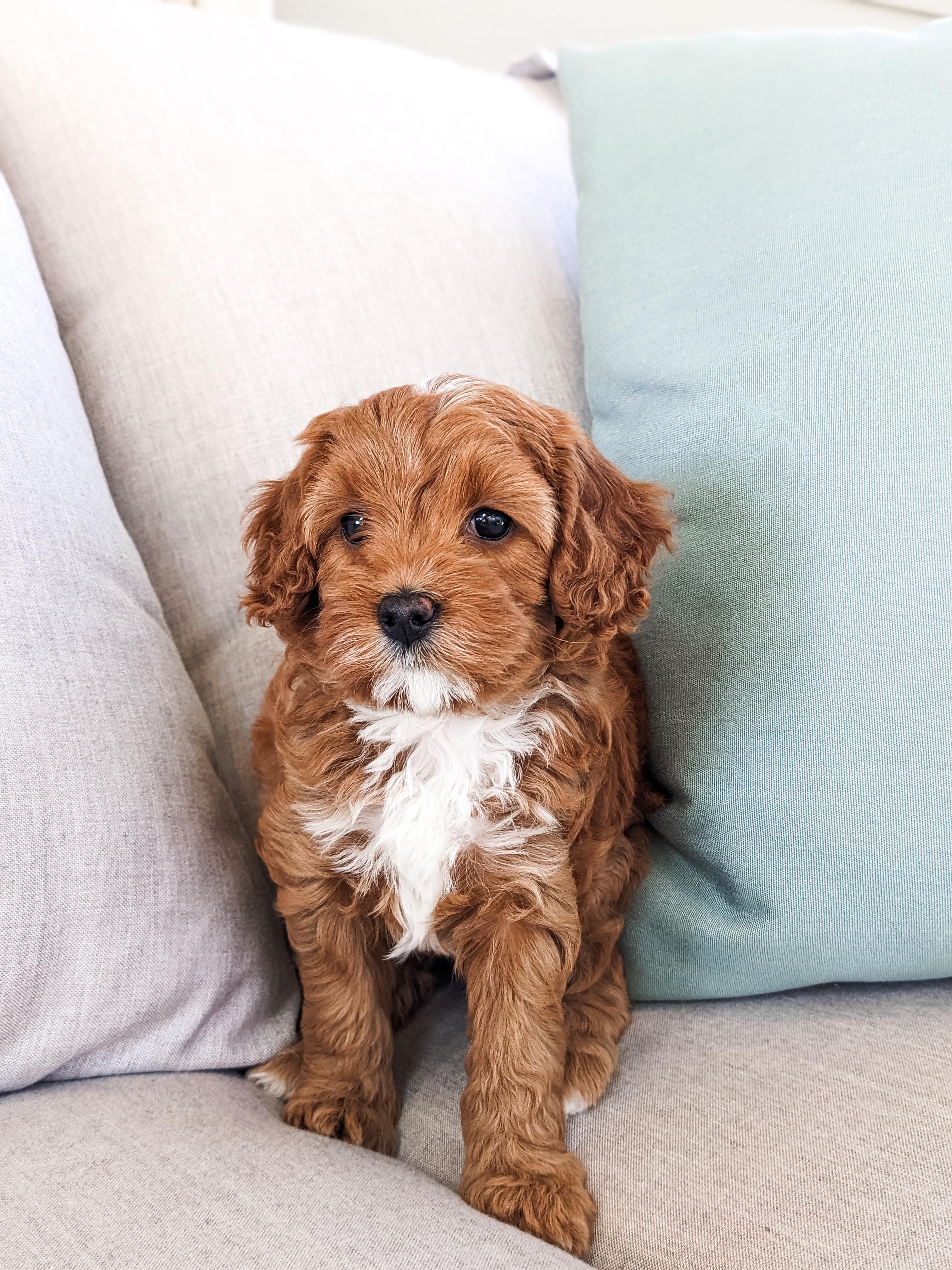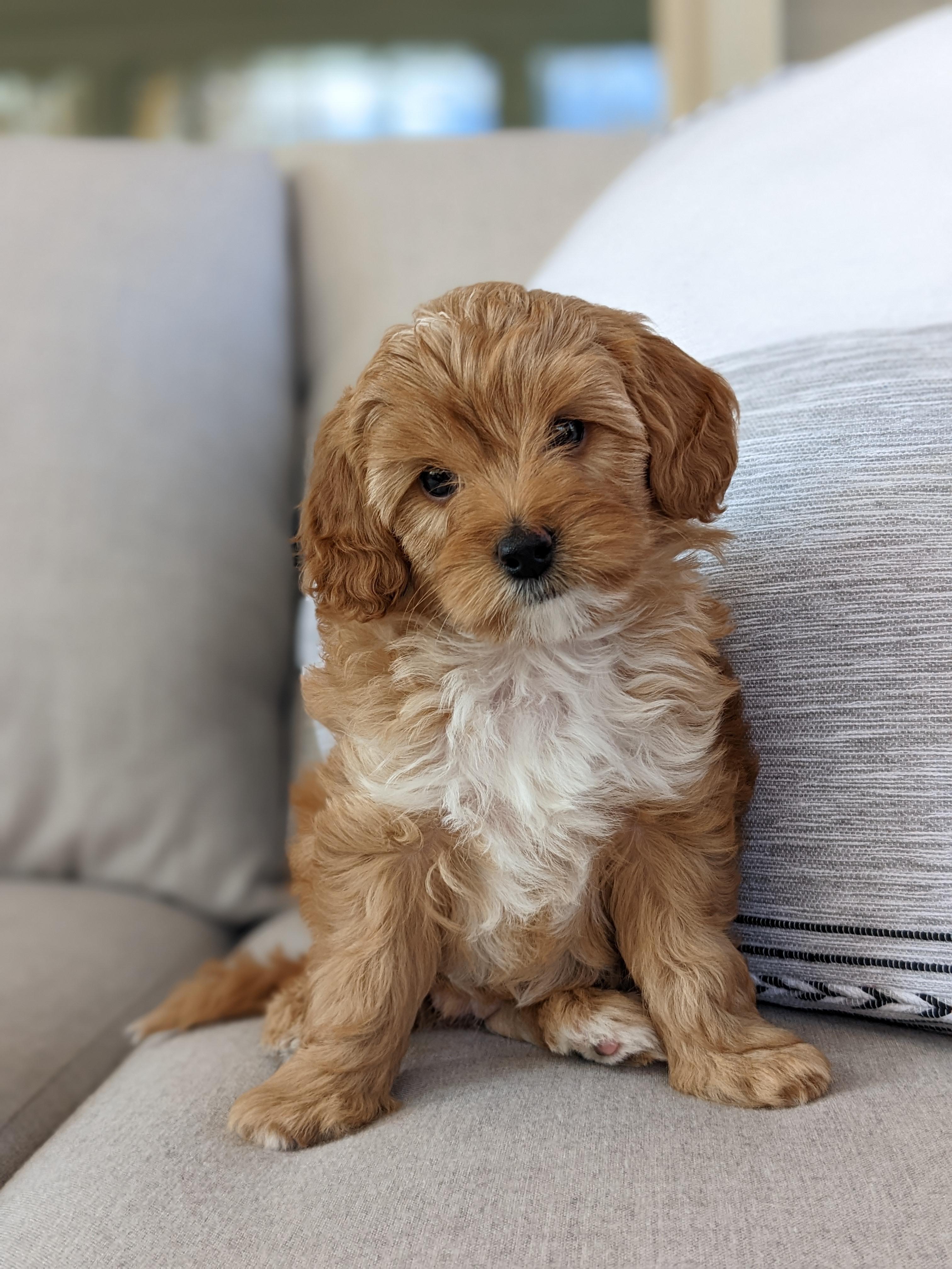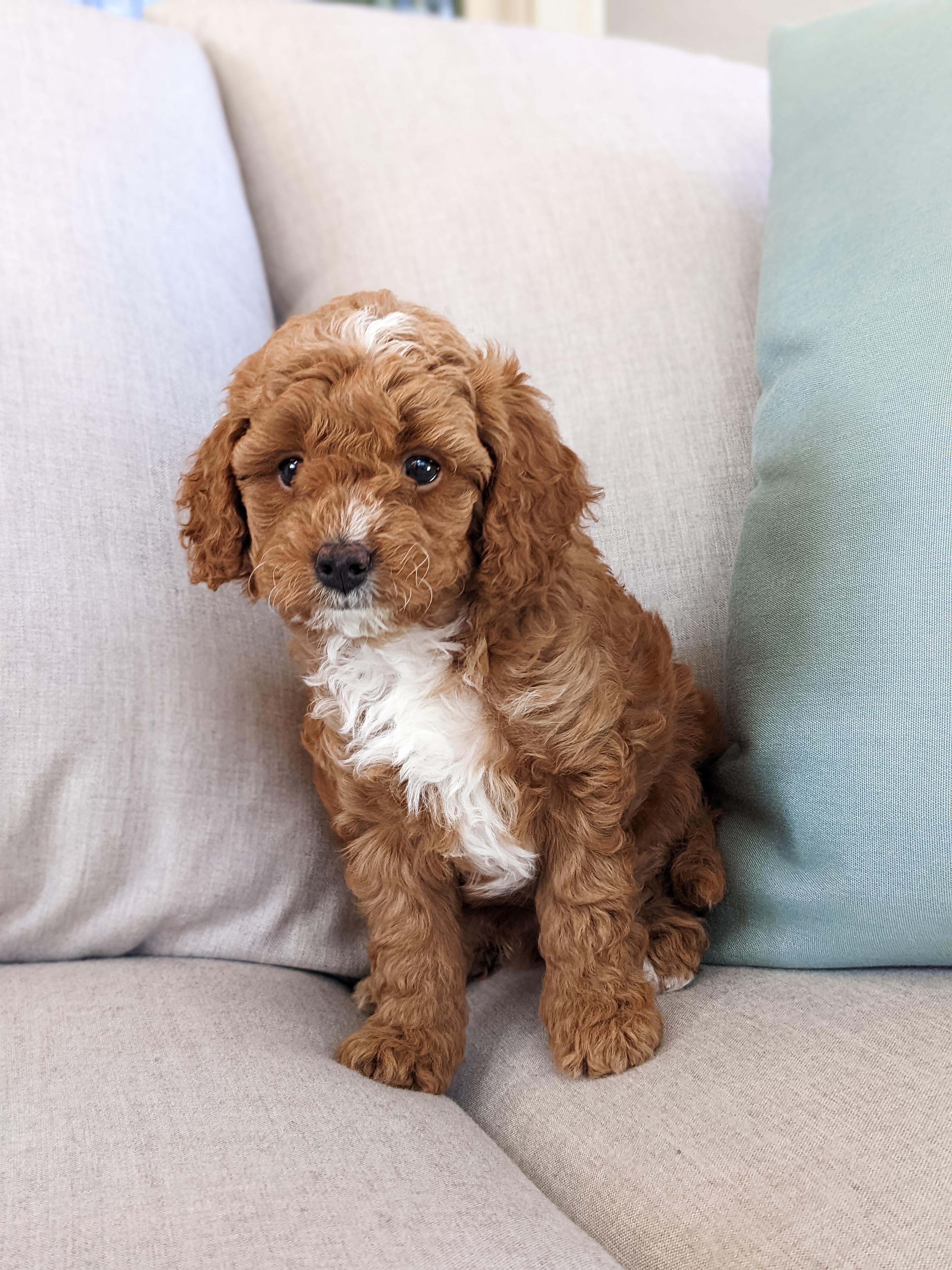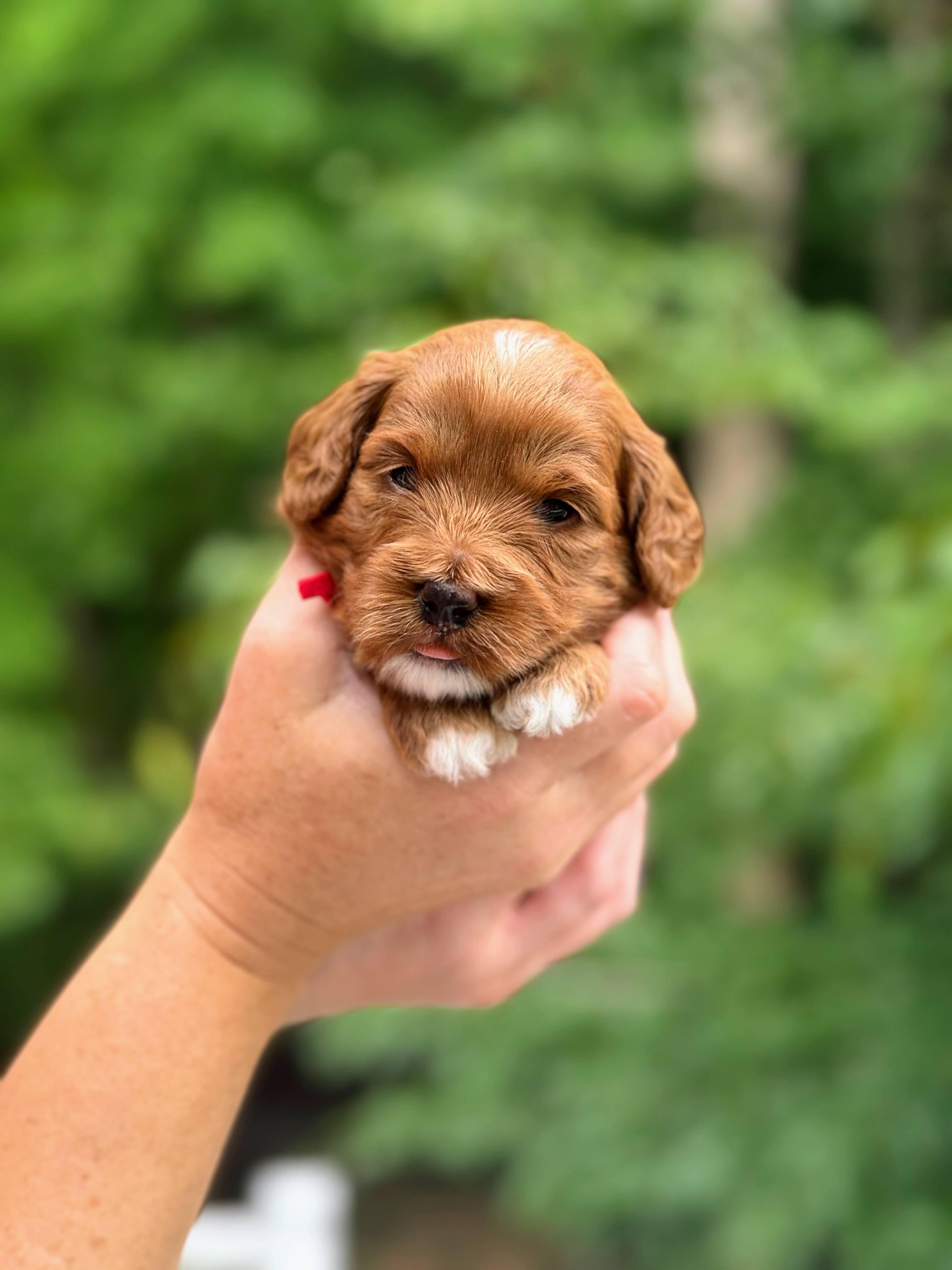 At Carolina Springs Breeding, we prioritize the health of our puppies and breeding dogs, while also considering temperament and appearance. Our red Cavapoos with white markings are adorable, but we emphasize health and temperament over looks. Our puppies are raised in our home with socialization to new experiences, and we continually seek to learn and improve our practices.