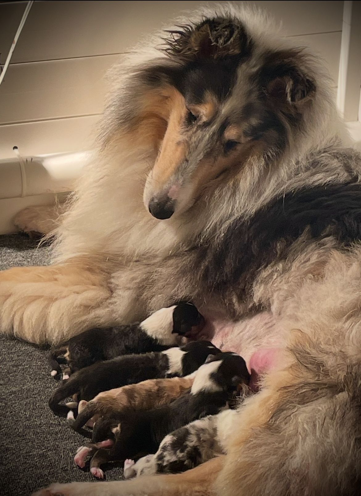 Fleck is a female Collie. Carefully selected as a great representative of her breed, Caroline decided to make her part of their program. Caroline has passed Good Dog’s screening process, which involved a review of their breeding practices, environment, and the mental and physical health of their dogs.