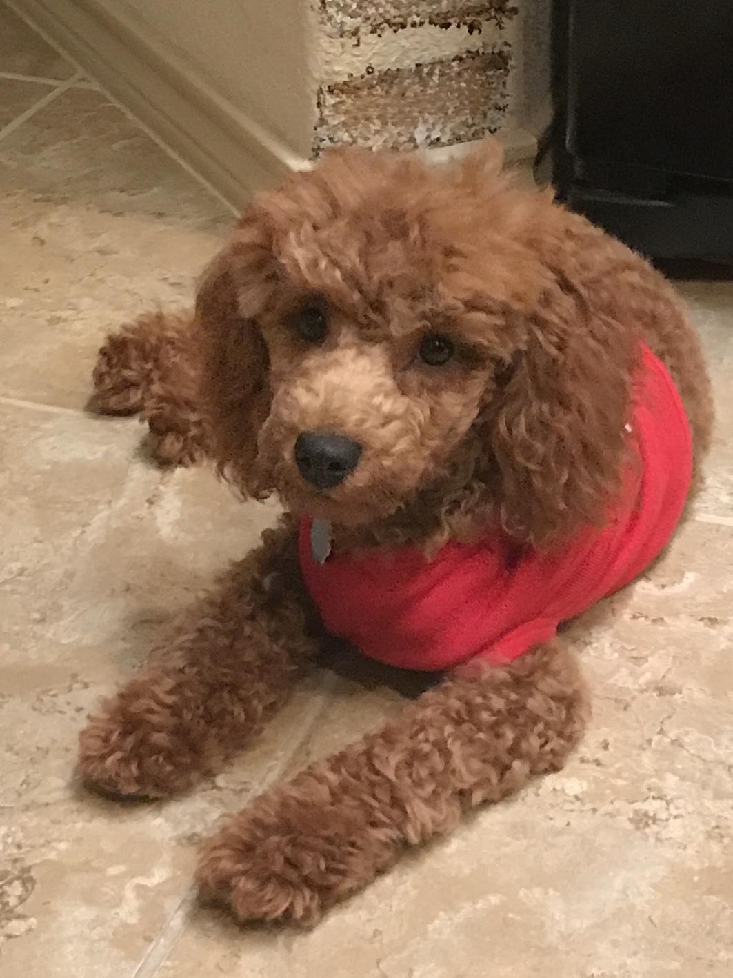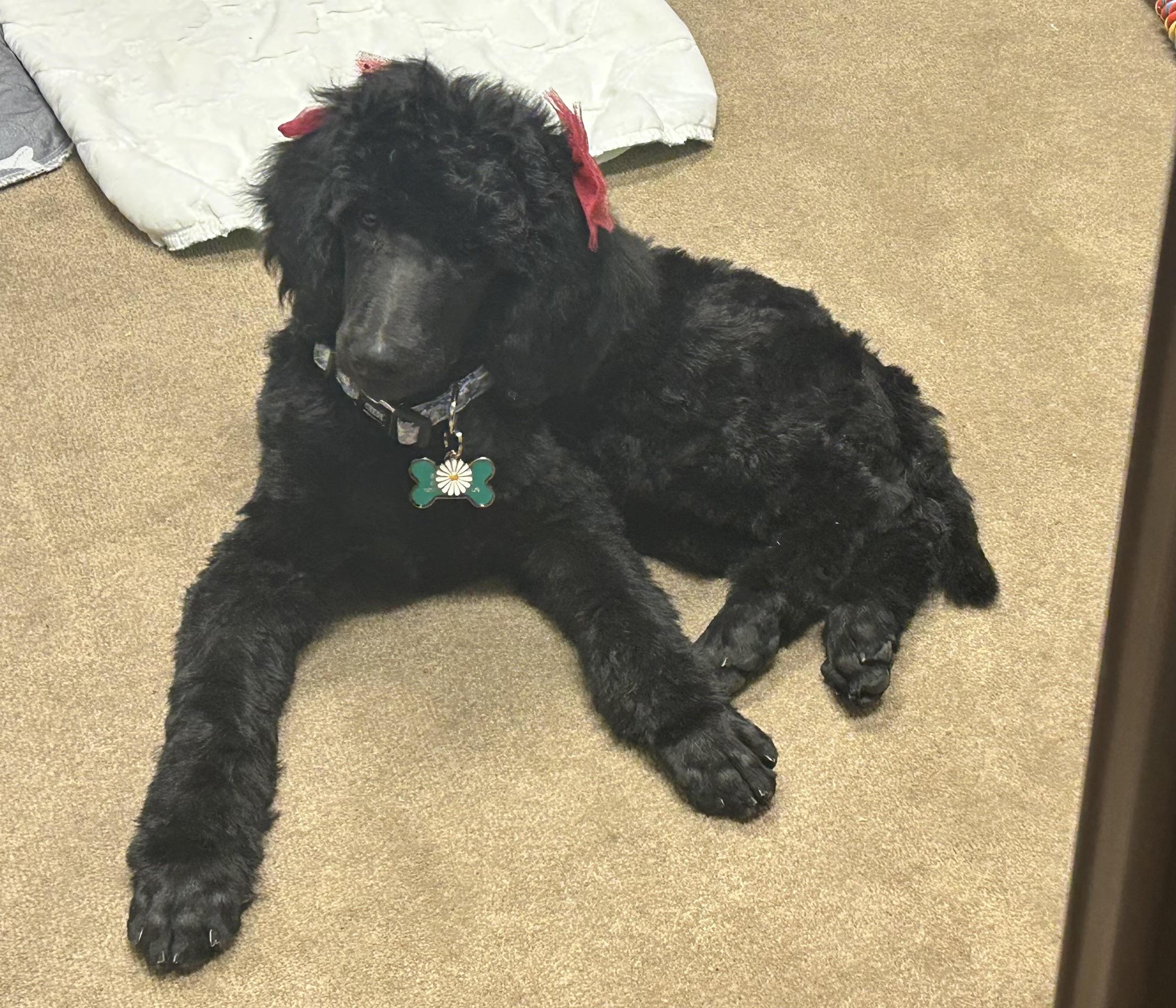 Raven is a small standard poodle. She has been DNA tested and is clear. She is very smart, listens intently, and follows commands. I purchased Raven from a local breeder who only breeds clear standards.