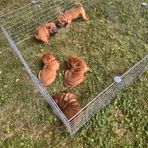 They’re growing so fast. Five weeks old now. They love being outside and have started running! This morning they are learning the stairs.