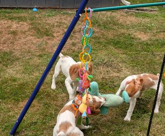 Starting at on day 1 early neurological stimulation and starting on day 3 through 16 with early scent introduction. As they get older I will introduce new introduce new items into their environment. They each will go home with their microchip prepaid, first shots, and a welfare vet visit before going home, plus a little going home gift to help them adjust! I can't wait for you to meet your new puppy!