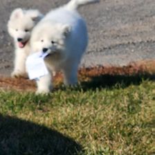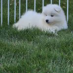 There isn't a sweeter samoyed alive. She rarely barks. She is so gentle with all of my grandkids and neighbor kids She is very gentle around toddlers and doesn't tip them over. Our two year old granddaughter leads her all around on a leash. Just a great family dog! When I took her to her last vet visit the doctor said that I have really improved the breed and my dogs are the best Samoyed's he has ever seen.