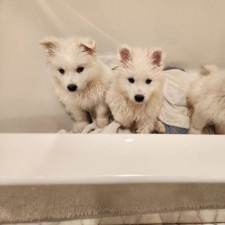 These little puppies love their bath time. They don't give me many troubles having their bath.
