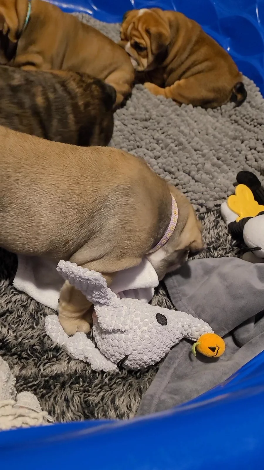 Carrie took such great care of the puppies. This is my second English Bulldog. I will definitely seek her out for my next one. Huxley is so healthy and sweet. She sent us home with a goody bag and still answers any questions. This has been a great experience.