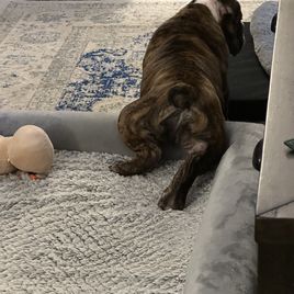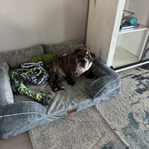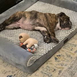 We found Winston on Good Dog on June 20,2025, and we contacted Carrie. The process of ownership was very easy on Good Dog. Carrie was very accommodating when we went to her house to pick up Winston. We got too see Coco, the mother, who was absolutely beautiful. We didn’t get to see the sire, but by his photo, we thought he was a very good looking male English bulldog. Winston is very handsome and we are very pleased with him. Carrie offered a lot of good advice about caring for an English bulldog and told us what food to get him. She also provided some treats, probiotics and puppy food for his transition to our home. Carrie really seems to love her dogs and takes excellent care of her puppies and her adult dogs. We renamed him Rocco.