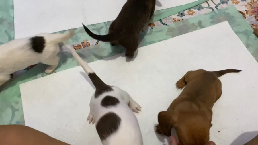 Our puppies include piebald, sable, cream, red, wild boar, chocolate, brindle, chocolate and tan, chocolate and cream, black and cream, blue and tan, fawn (isabella) and tan, gray (blue) and tan, and dapple. Colors will vary depending on the parent dogs.