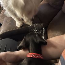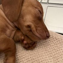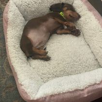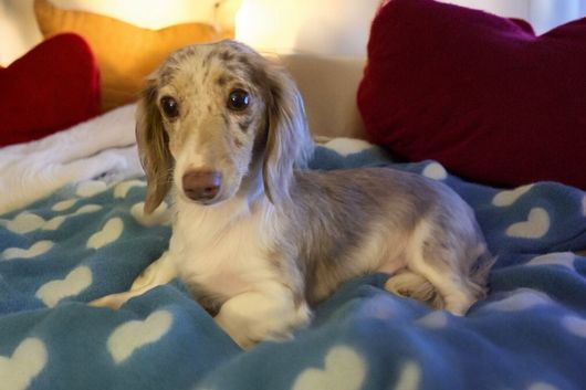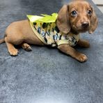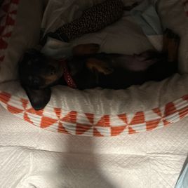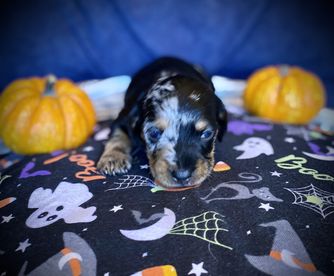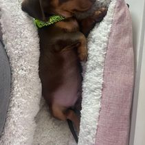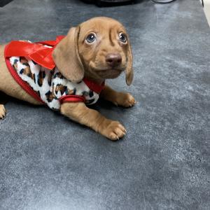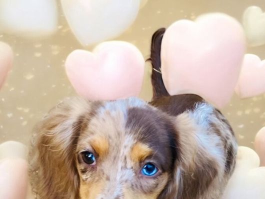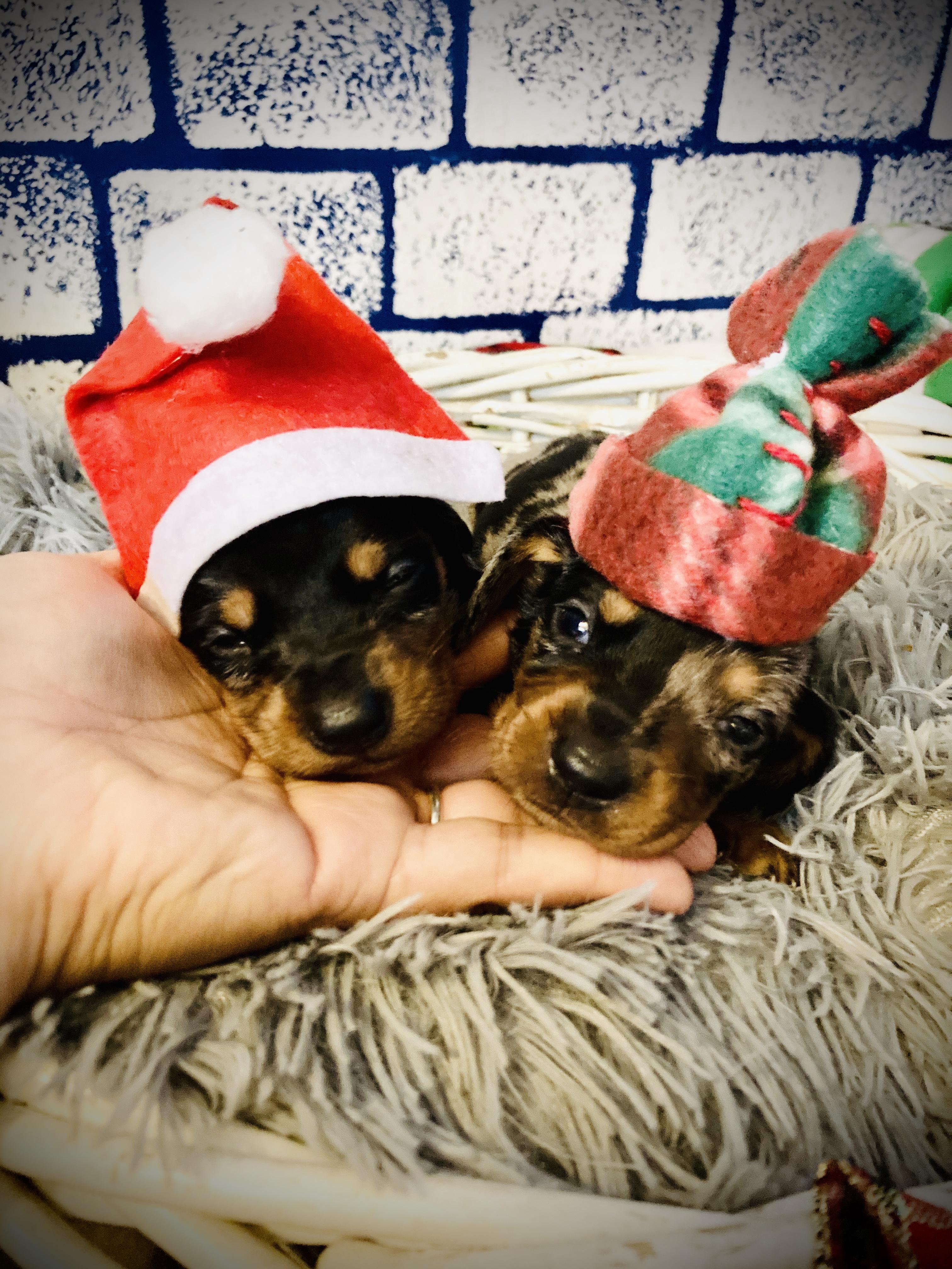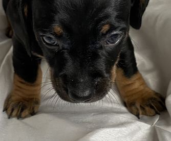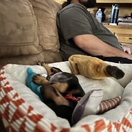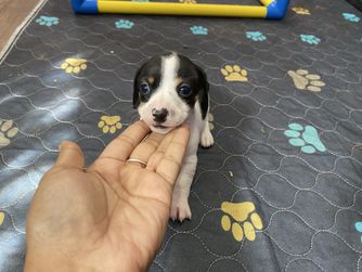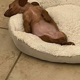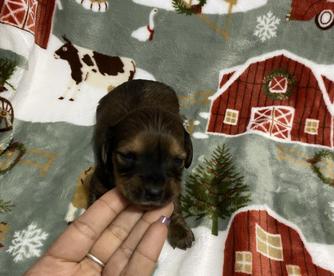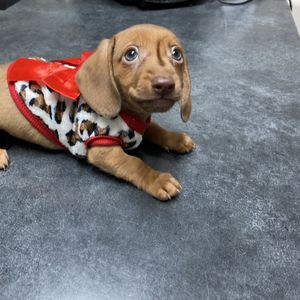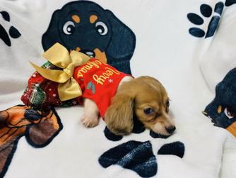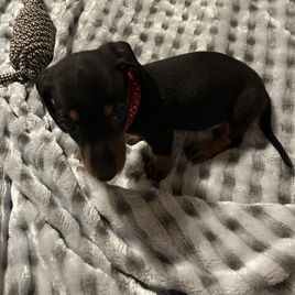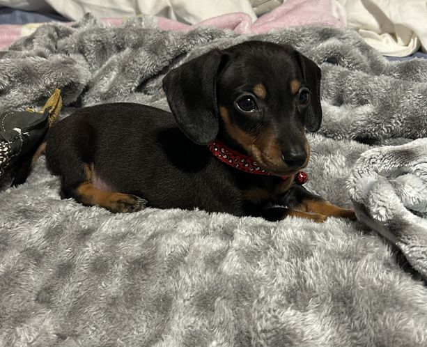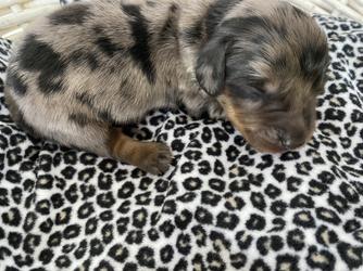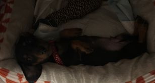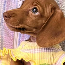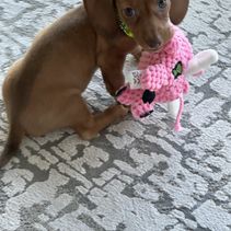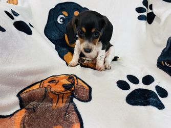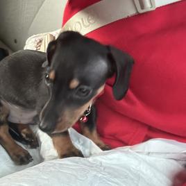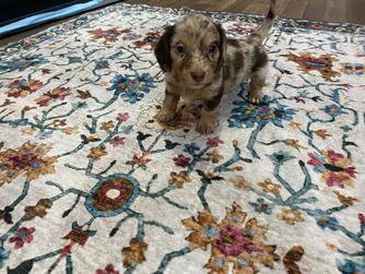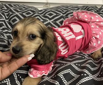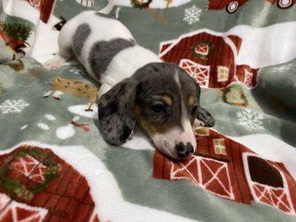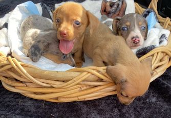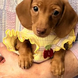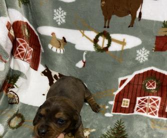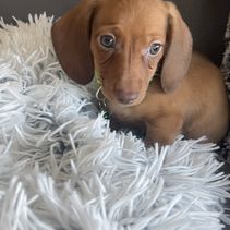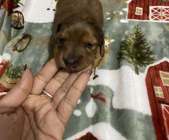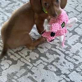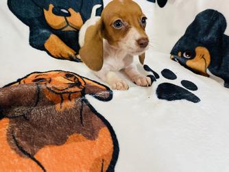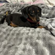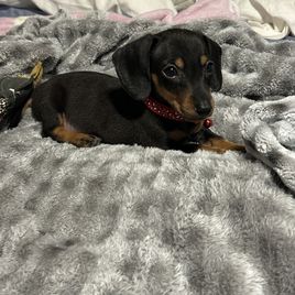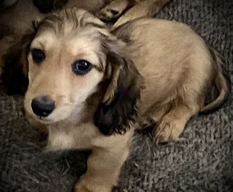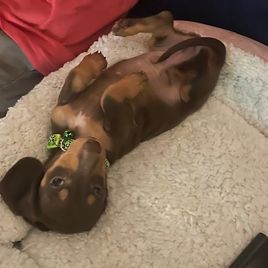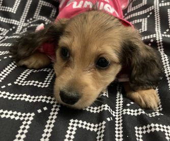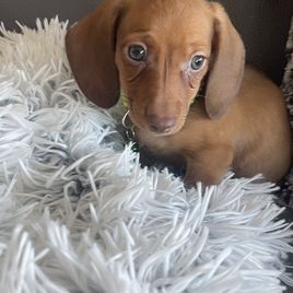 It took me a very long time to decide on which breeder I wanted to get my new baby from.  I read many reviews and looked over many puppies before finally choosing Carrie. How wonderful the whole process went.  If Carrie isn't the best she's certainly one of the top two.  She kept me up to date, on my puppy and her littler mates, with photos and videos while they were growing and learning about the world.  I specifically honed in, and appreciated, that Carrie's young children are encouraged to play with the puppies. I can attest to it being a huge plus in socializing the pups.  My little nugget not only loves little children but turns herself inside out, with wiggles, over every one she meets. Here's one of the best parts; she was well on her way to potty training the day she came home.  She rarely misses using her pee pads.  To me that alone has been "worth the price of admission."  On the day I picked her up I could tell that Carrie was having mixed feelings about seeing her pups leave her while at the same time she was happy for me.  That is proof, to me, she truly loves what she does but she's doing it with a big heart. Anyone considering adding a cute little dachshund into their life will do well working with Carrie and bringing one of her teenie wienies into their life,   Let me introduce you to AMBER the light of my life.