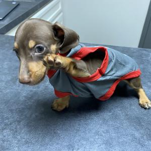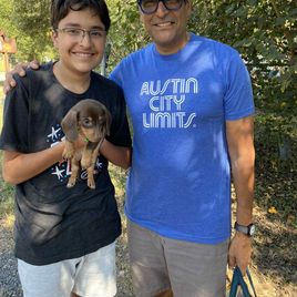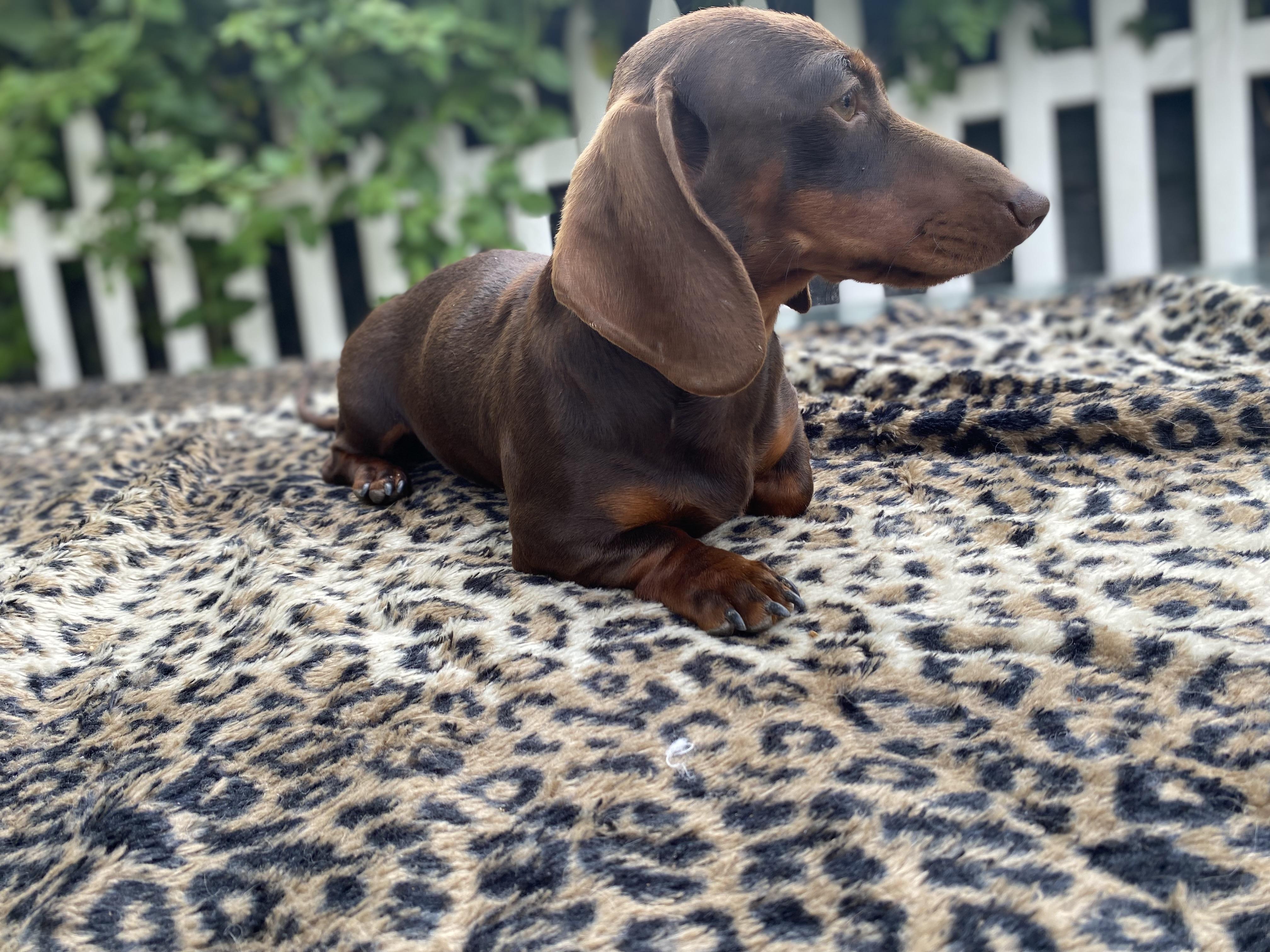 It’s been 5 days since my son and I made the trek to Magnolia from Dripping Springs, TX. The trip itself was memorable and was nice to spend some time with my son. On arrival to Magnolia, we were greeted by Carrie with our little bundle of love. I probably just didn’t read the fine print, but was really surprised and happy with the nice kit she put together…just makes the transition a little more special for us and less stressful for this little chocolate weenie dog. This little doxy has totally brought joy to our home. His name is Henry. He is so curious, loving, and such a good pup. We love him, and he just completes us. Carrie, thank you for the great job you do in raising and socializing these little Dachshunds before they go to their forever homes. All that hardwork you do is so appreciated. Thanks again!
