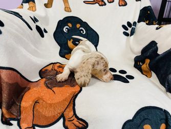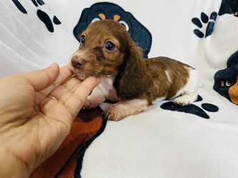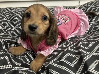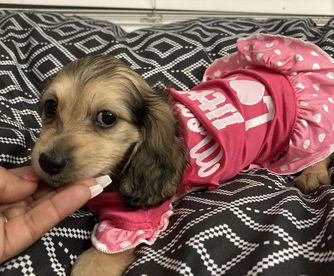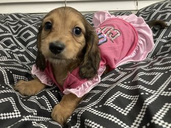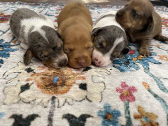 I'm Carrie A., the breeder behind Carrie’s Countryside Dachshunds located in Magnolia, TX. We are AKC inspected with 100% pass rate. Every puppy we raise is adored as part of our family from birth. I am home 24/7 raising them 🙂 if I leave I always have someone here. I pad train them and socialize them daily with adults and children as well. You’d be suprised how many people don’t do this. It makes for a much easier transition to their furever homes! They receive deworming at 2 week increments. Vet check and shots done . Sent home is a puppy tote bag with the contents: shot record, current food sample, blanket with moms/litter mates scent, puppy pads, Puppy collar, and MORE! I also groom them, trim nails regularly (again most people don’t do this) give them baths and blow dry so they will be accustomed to this. I teach them not to pick up bad habits like chewing hands or puppy pads, but instead approved chew toys. Please message me to get to know more about me and our puppies/parents! I also enjoy frequent updates on our puppies long after they have went to their homes, some choose to stay in contact for their lifetime! We don’t mind, I’m just living in a dogs world! 😊 🥰 I offer both akc, CKC, and non registered puppies. We also Offer studding at a LOW cost! All puppies will Leave with first shots. And visitors are welcome! Gooddog has adopted a new trial run of payment plans through klarna as well for buyers!!!