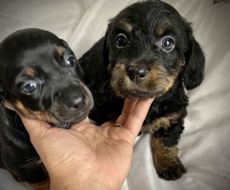 Our puppies include longhaired, smooth, and wirehaired coat varieties. Coat types may vary depending on the parent dogs.