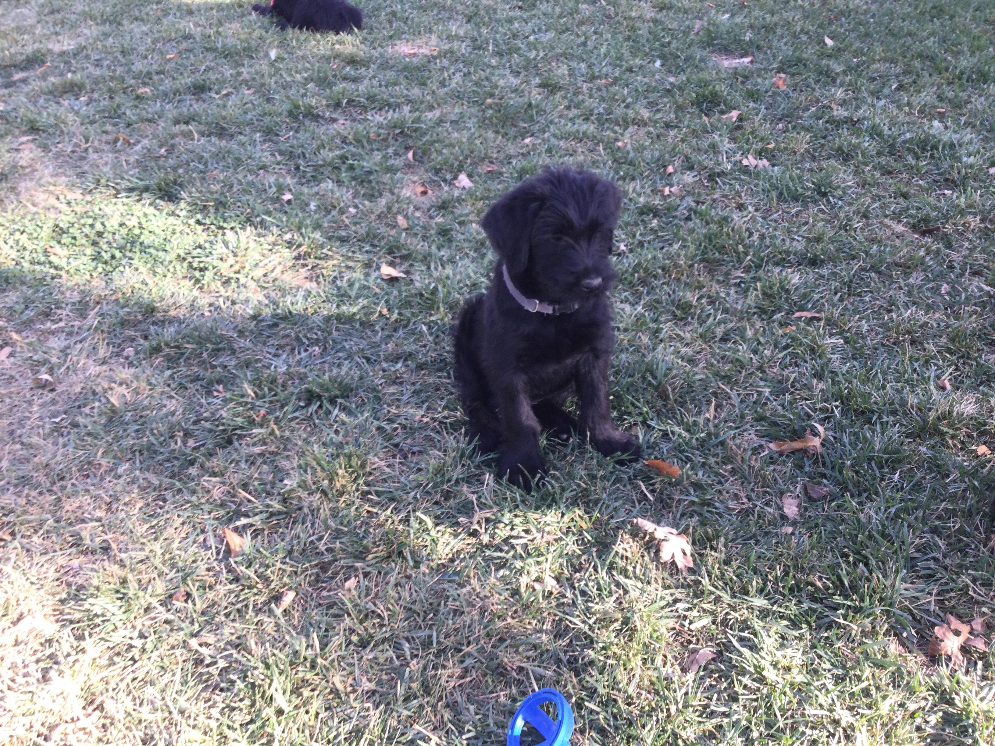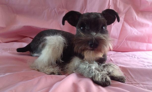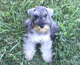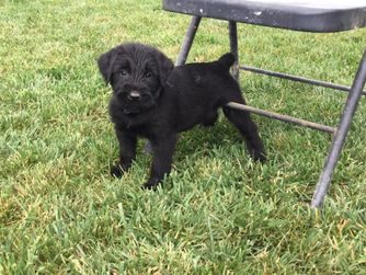 Our Miniature Schnauzer puppies include salt and pepper and black. Giant Schnauzer puppies are black. Colors will vary depending on the parent dogs.