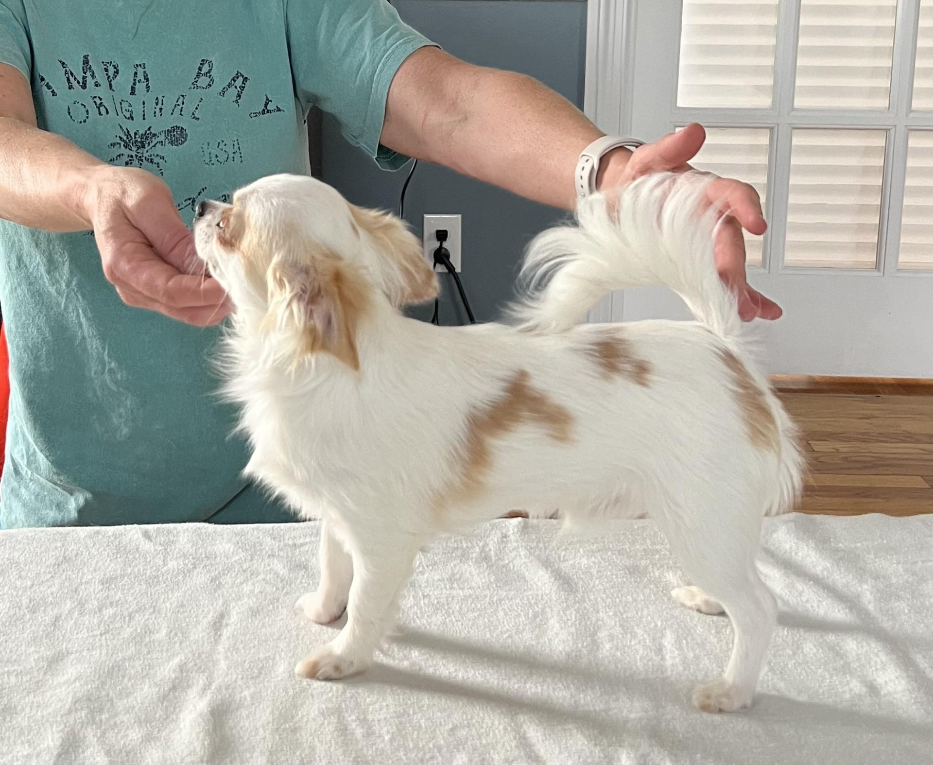 Our dogs are pets first, however, they are exemplary examples of the breed. You will not see kennel banks in our home with excessive dogs. WE BACK UP OUR DOGS. If you get a show quality dog from us, we will back it up. Our first show chi was over 6 pounds at just over 6 months, which is a DQ. That breeder didn't back it up. we will NOT be that breeder! This goes for health issues as well.