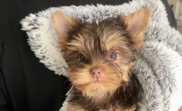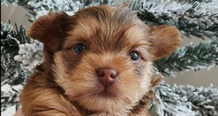 Nia Bella is a gorgeous platinum chocolate yorkshire terrier registered with AKC. She has a huge personality packed into her small self. She is super playful and gets along with everyone she meets. She shares the same baby doll face as her mom Nahla. In true Yorkie fashion, she is spunky and energetic.