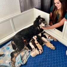 My passion for poodles started when we wanted a family dog but dogs would give me allergies. We looked into breeds I could tolerate and came to the conclusion of a poodle or doodle. Our first poodle, Louis is one of our father parents. We fell so in love with him we couldn’t not gift the world with these precious beings! What keeps me going? I love hearing success stories of happy families.