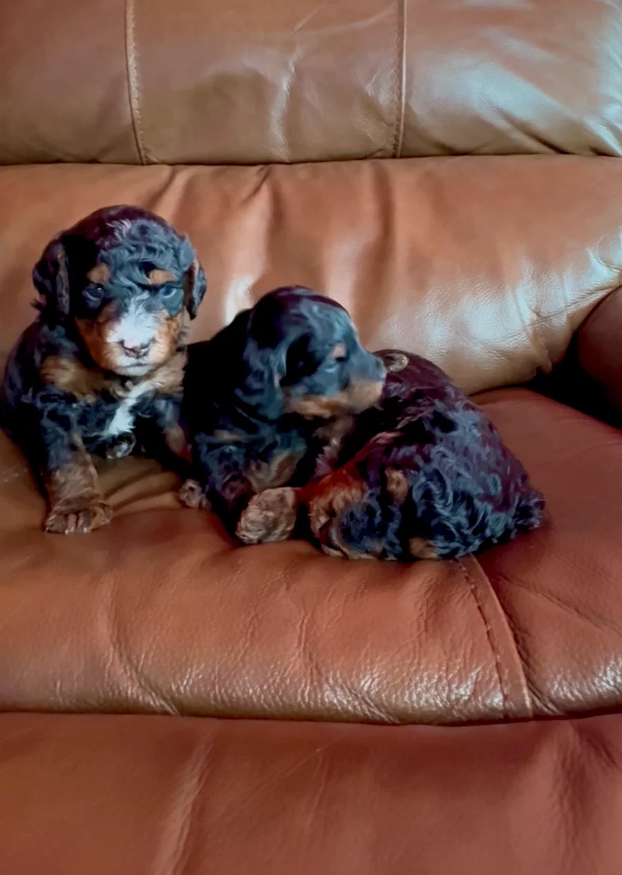 Cascade was wonderful to work with. Very responsive and helped me with all my questions. Picture updates and video calls during the whole process made waiting so much easier. My parents adopted a sibling from the litter at the same time and we love having play dates and watching the brothers grow. I can tell these pups were loved before we received them and that conditioning made them have wonderful temperaments. I fell in love with a bernedoodle that was at one of my daughters appointment and decided it would be a great fit for our family, I later found out the dog I met at the appointment has the same mom as our sweet boy! Both boys are 5 months old now and are incredibly smart. Cascade was able to predict their personalities too, my parents dog is goofier and higher energy whilst our pup is super chill and easy going. I highly recommend Cascade and bernedoodles! Our pup is our 10 year old daughter’s best friend!!!