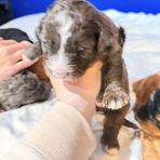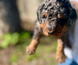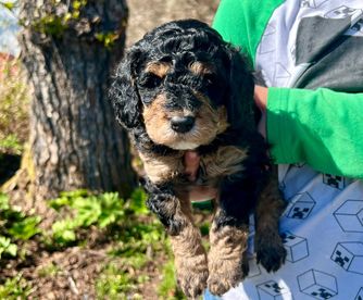 We are first-time dog owners and are in love with our forever friend from Cascade Country Doodles. We got a mini bernedoodle, and he has seamlessly become part of our family. He has the sweetest temperament - playful yet mellow - and is the perfect addition to our home. Cascade Country Doodles Facetimed us so we could meet him virtually before bringing him home, and they were so responsive to our many questions via calls and text. We trust them and would recommend them to anyone looking for a dog. Our puppy is almost 5-months old, and we can't imagine life without him now.