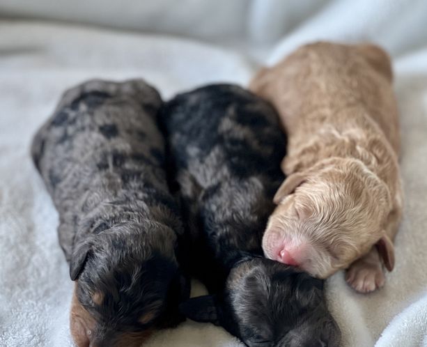 We have been raising puppies since the early 2000s where we got our start raising hunting hounds. We transitioned over to mini bernedoodles in the last few years and have loved it. We love what we do and our dogs are part of our family.