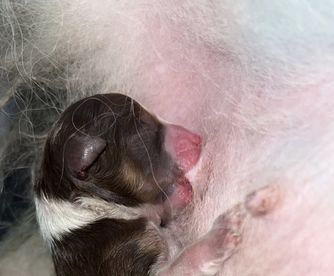 Vinny is a Chocolate Mismark. AKC Registered. 5.5lbs. He carries the Kb trait as well as Dilute.