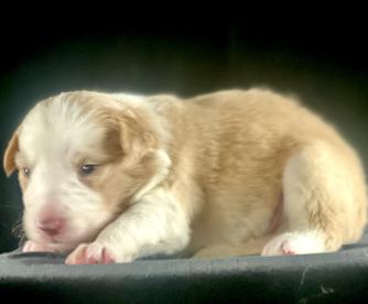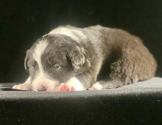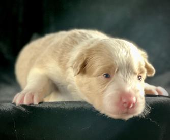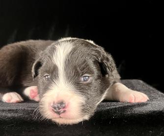 Our puppies include black and white, white and blue, and white and gold. Colors will vary depending on the parent dogs.