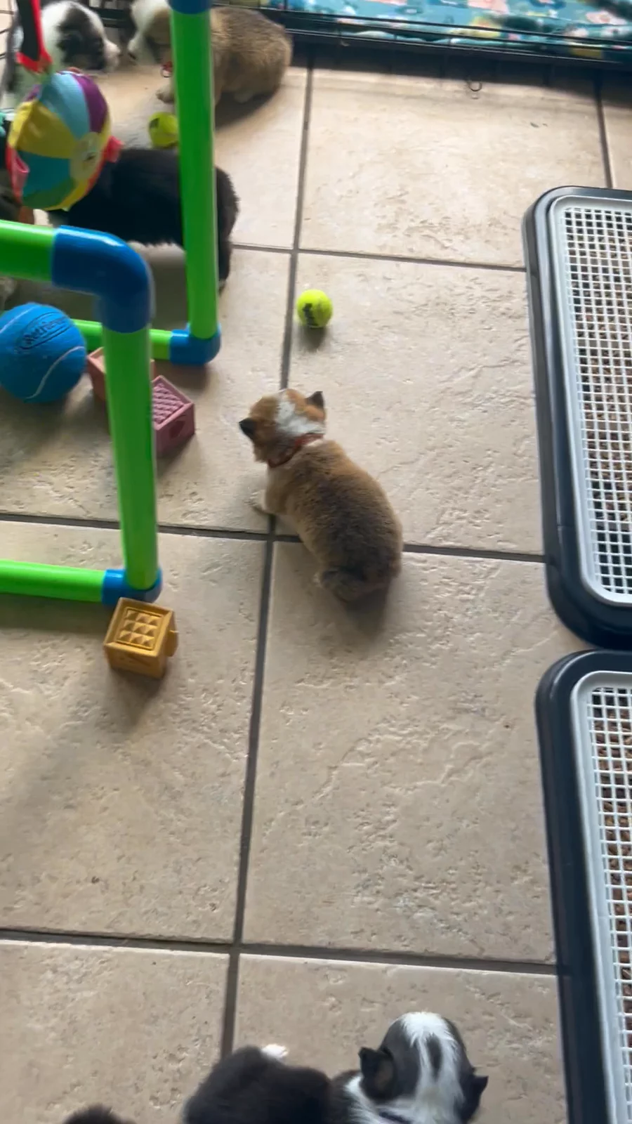These little space potatoes are growing fast! 🥔🚀🐾Sally and Molly's litter are now out of the nursery and in their bigger pen all together! Learning to use the litter tray and starting to eat puppy mash! 🎉It only gets cuter from here !! 🤩🎀🙌🏻🫶🏻