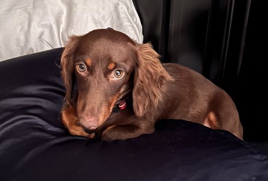 Callum is a male Dachshund. Carefully selected as a great representative of his breed, Casey decided to make him part of their program. Casey has passed Good Dog’s screening process, which involved a review of their breeding practices, environment, and the mental and physical health of their dogs.
