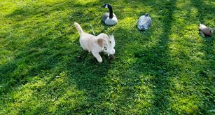 Pup sits on a whistle ,whistle recalls, on live birds, will be a dual dog hall of fame, started on backs for blinds plus basic obedience