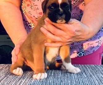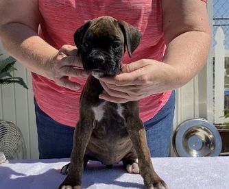 We had such a wonderful experience with Rhonda. From the very beginning, she was incredibly responsive and easy to work with, answering all of our questions and keeping us informed throughout the process. Our puppy is everything we could have hoped for—he’s a perfect boxer boy with all of the loving, playful, and loyal characteristics that make this breed so special.