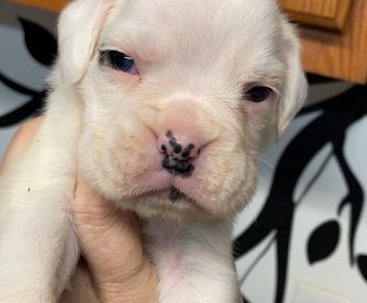 Our puppies include fawn, brindle, and white. Colors will vary depending on the parent dogs.