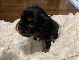 Our puppies include blenheim, ruby, tri-color, and black and tan. Colors will vary depending on the parent dogs.