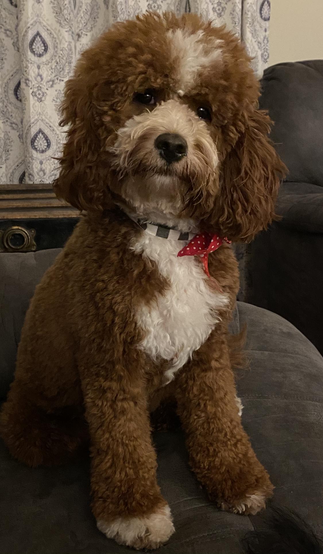 Soph is a female Cockapoo. Carefully selected as a great representative of her breed, Cassie decided to make her part of their program. Cassie has passed Good Dog’s screening process, which involved a review of their breeding practices, environment, and the mental and physical health of their dogs.
