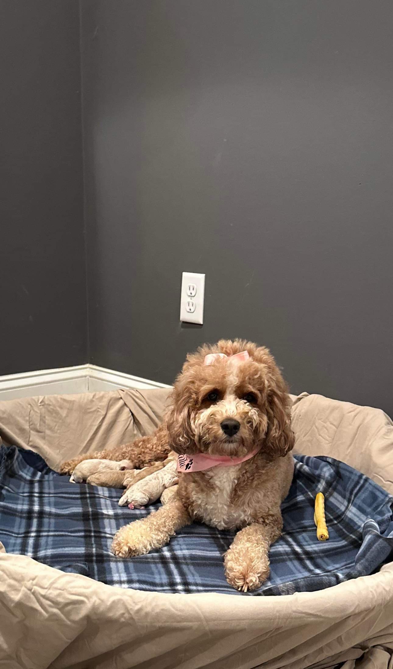 Char Char is a female Cockapoo. Carefully selected as a great representative of her breed, Cassie decided to make her part of their program. Cassie has passed Good Dog’s screening process, which involved a review of their breeding practices, environment, and the mental and physical health of their dogs.