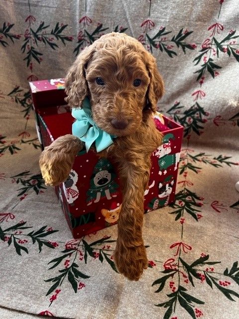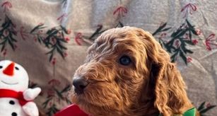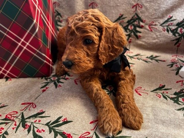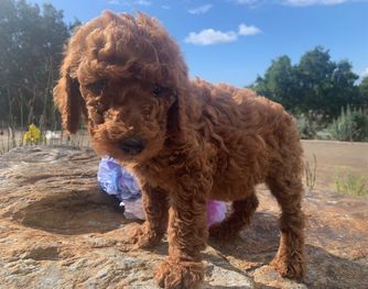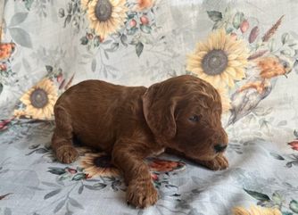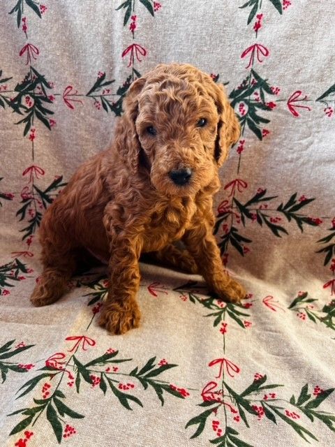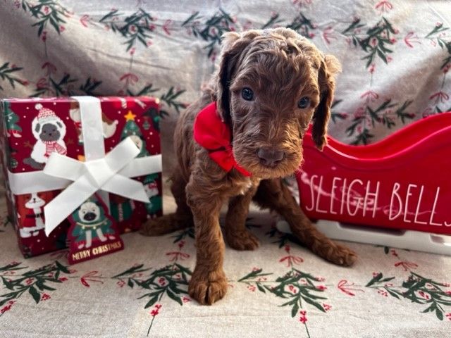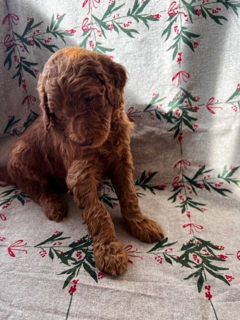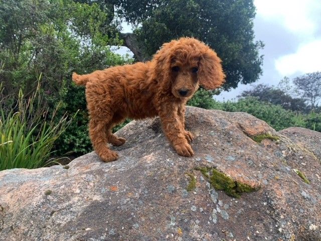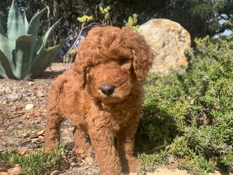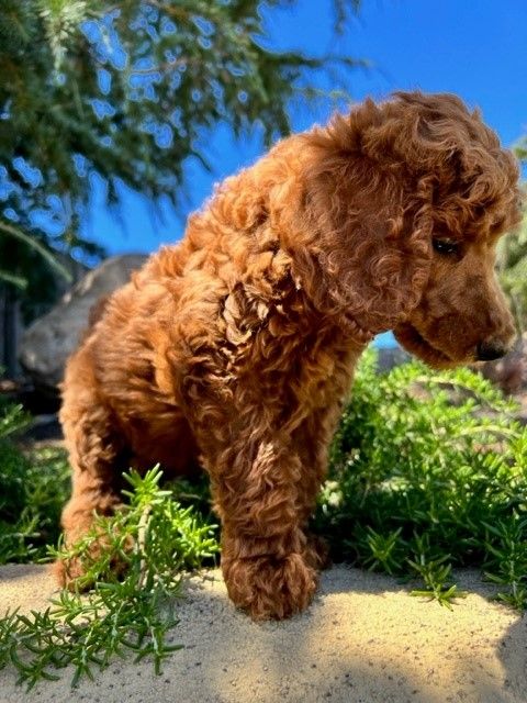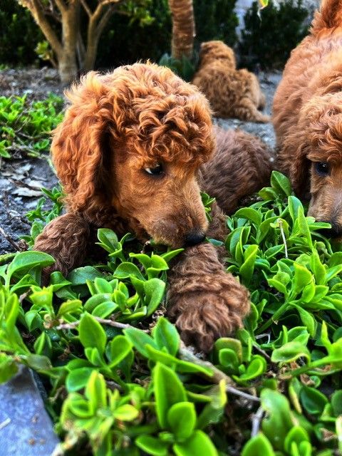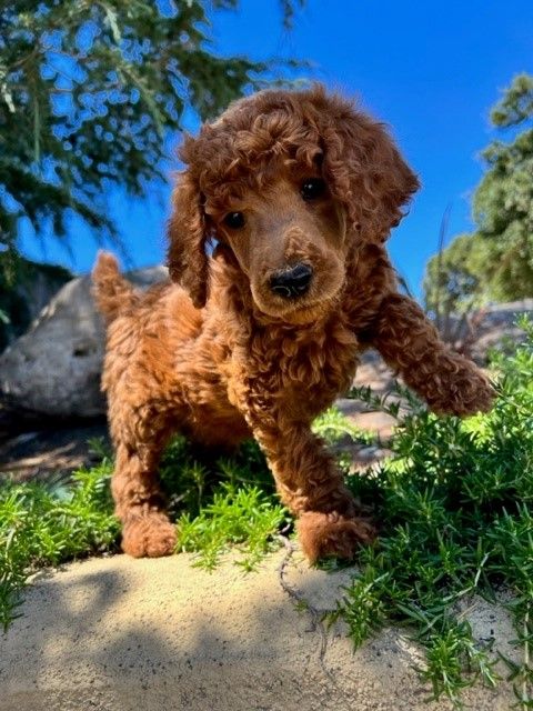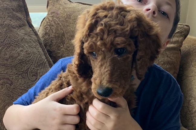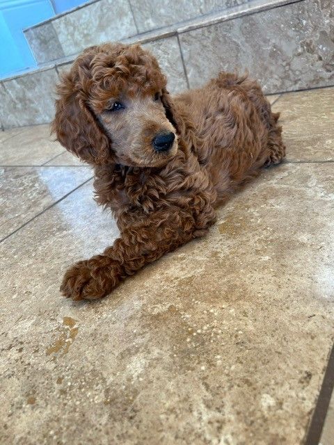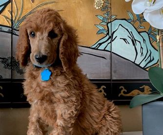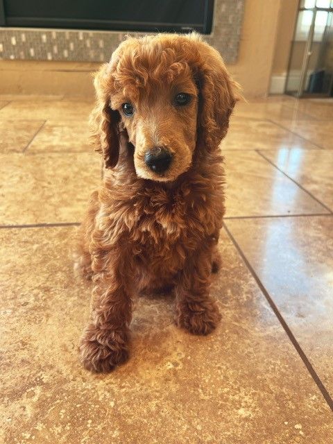 Remi is the newest member of our family pack. He is a beautiful deep dark red boy. We think of Remi as a gentle giant. He is a big boy, but a bit shy at first. He is such a lover, but never needy. He is always happy to have a belly rub, but just as happy to lay near any one of his family members, human and pup alike. Remi gets along with all four-legged friends he meets and is always polite. Remi’s intelligence shines, sometimes he figures out more than we would like. He really enjoys opening doors for himself and finding any way he can to get wherever he wants to go. He is quite a problem solver. Despite being the newest addition to our poodle family, he has such a big place in our hearts, just by being the silly, sweet, boy he is.
