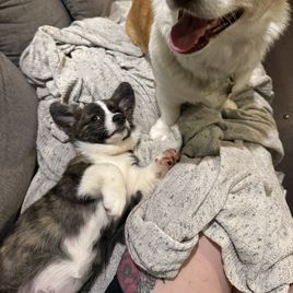 Edward clearly cares about making sure his puppies go to good homes. I really appreciated his thoughtfulness and attention throughout the process, and was thrilled when he said I could bring Clementine home. She has been an amazing and fun addition to my little family, and her corgi big-brother loves her to death. They have been instant besties and it has made such a difference to Auggie to have his little sister around. We're thrilled!!
