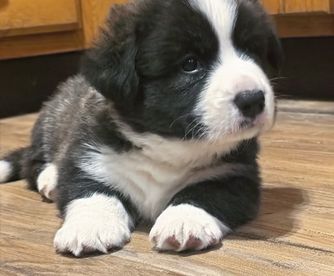 Our puppies include black and white and blue merle and white. Colors will vary depending on the parent dogs.