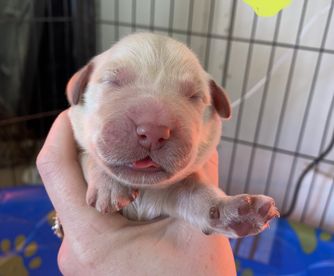 Kara was a great breeder to work with! She helped us find the puppy that would suit my boyfriend and I the best! She allowed us to meet the puppies over FaceTime where we instantly fell in love with the one we picked out, Boog. Kara was very good at communicating between us and the ones who delivered our puppy. It’s been over a year of us enjoying our ‘not so small anymore’ puppy! We absolutely love her and her goofiness. Thank you once again Kara for introducing us to our pup!