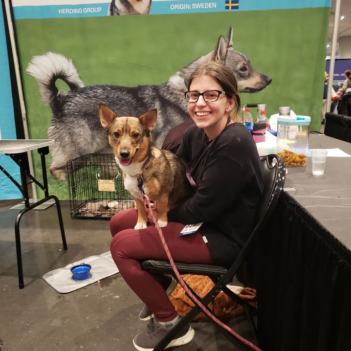 I used to be a private dog walker/dog assistant for families on the Upper East Side in New York City. While doing this I was volunteering at The NYC Animal Care Centers of NYC. I decided to switch gears and work for ACC when approached with an offer. I worked as a dog and cat handler but was known in the facilities for my knowledge and handling of rabbits and exotics. Kevin works in healthcare but his hobbies are computers and tech. I went to school for Art History and Kevin, well, has more varying degrees that I can keep up with. So we wanted to combine our passions. Dogs, 3D printing & art . After some time, and research we were gifted with finding Justina and Nick Hagerman of Skyfyre Swedish Vallhunds in Florida. With the amazing support of the Val community, our Daisy is on the road to becoming a Champion and continuing the breeds lines.