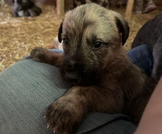 Our puppies include wheaten, gray and brindle, and brindle. Colors will vary depending on the parent dogs.