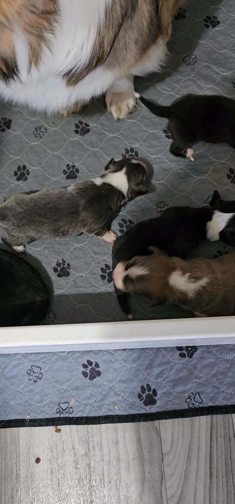 I started breeding at age 14 when I bought my first dog with my own money from working at the family restaurant as a cook. He was a short haired St Bernard. Considering it took me forever to find this guy I thought it would be fun to breed them to make it a little easier for people to find one in our area as I had to travel 8 hours to pick him up. Long story short I ended up having 3 litters and it was a success, sadly after quite a few years passed they ended up getting old and that was when I had decided to start a family and sadly my beloved male came up missing and we didn't find him until after the snow melted 😢 he had passed. My next adventure was my mastiff that we had to lay to rest December of 2022, her name is Gemma and she was a gentle giant. You wouldn't think that was true when you first arrive as she does her job well but once you gain her trust she will never leave you alone for all the attention she can get. She ended up giving us 5 beautiful litters. Now we have Pembroke Welsh Corgis! Now, because I think they are the best most versatile dog on this planet. I think everyone should own a corgi at some point in their lifetime. We started this adventure in 2016 and we are loving every minute of it. Now that all my kids are out of the baby stage I decided I could start breeding. With my husband's request we chose to get a corgi. I honestly had never even heard of one. After many many nights of researching on my quiet time I thought this could be fun and a great experience for my children as well as myself. Now we have so much time and effort into this and we have enjoyed every minute of it.