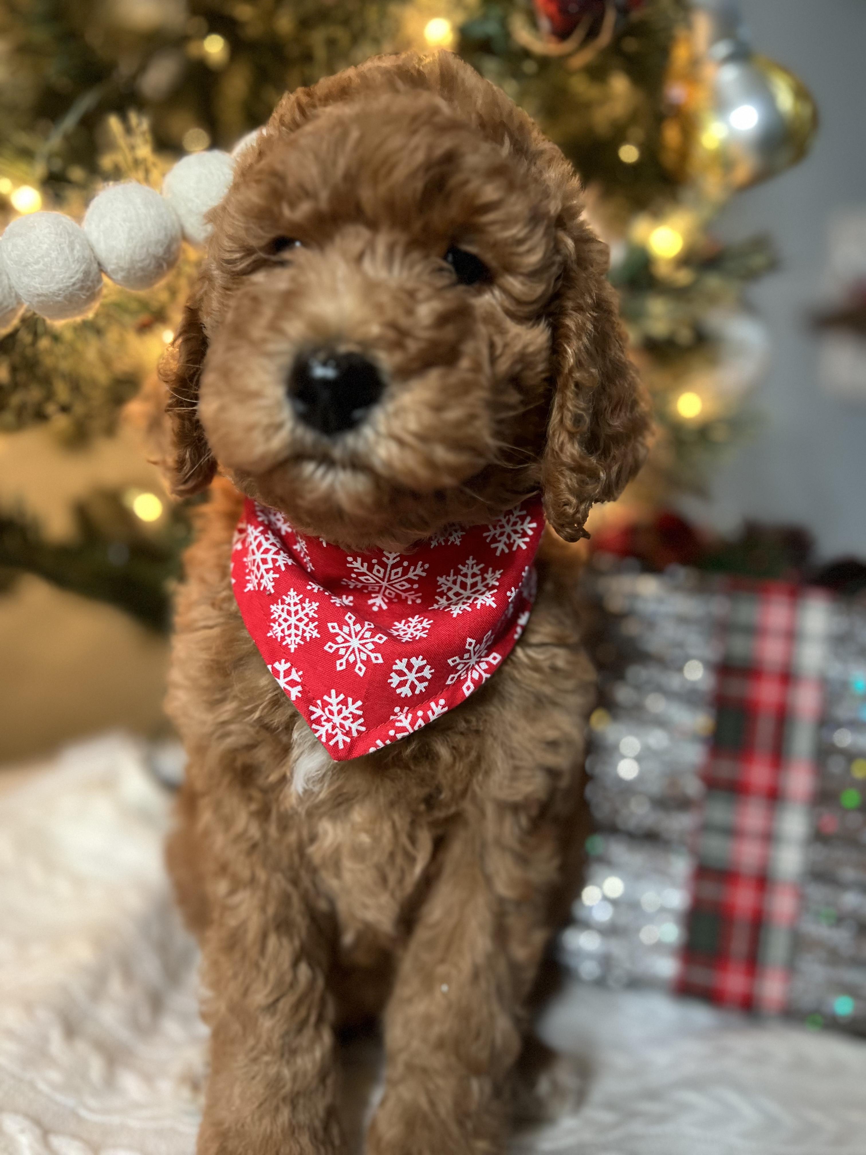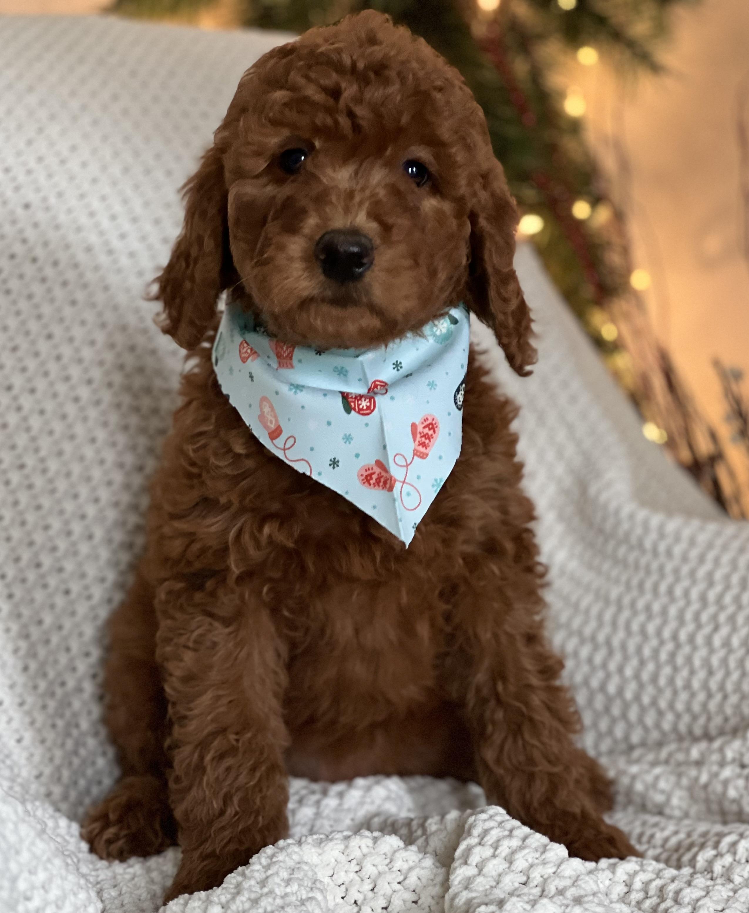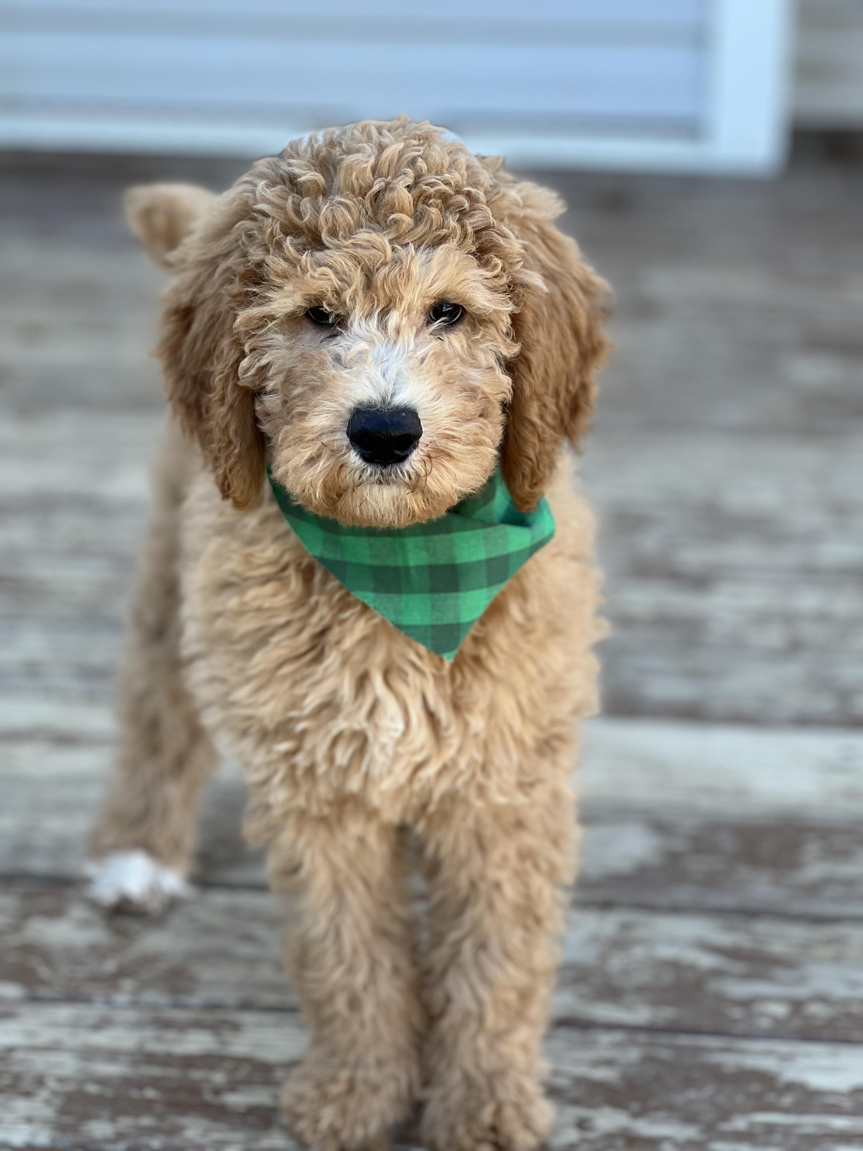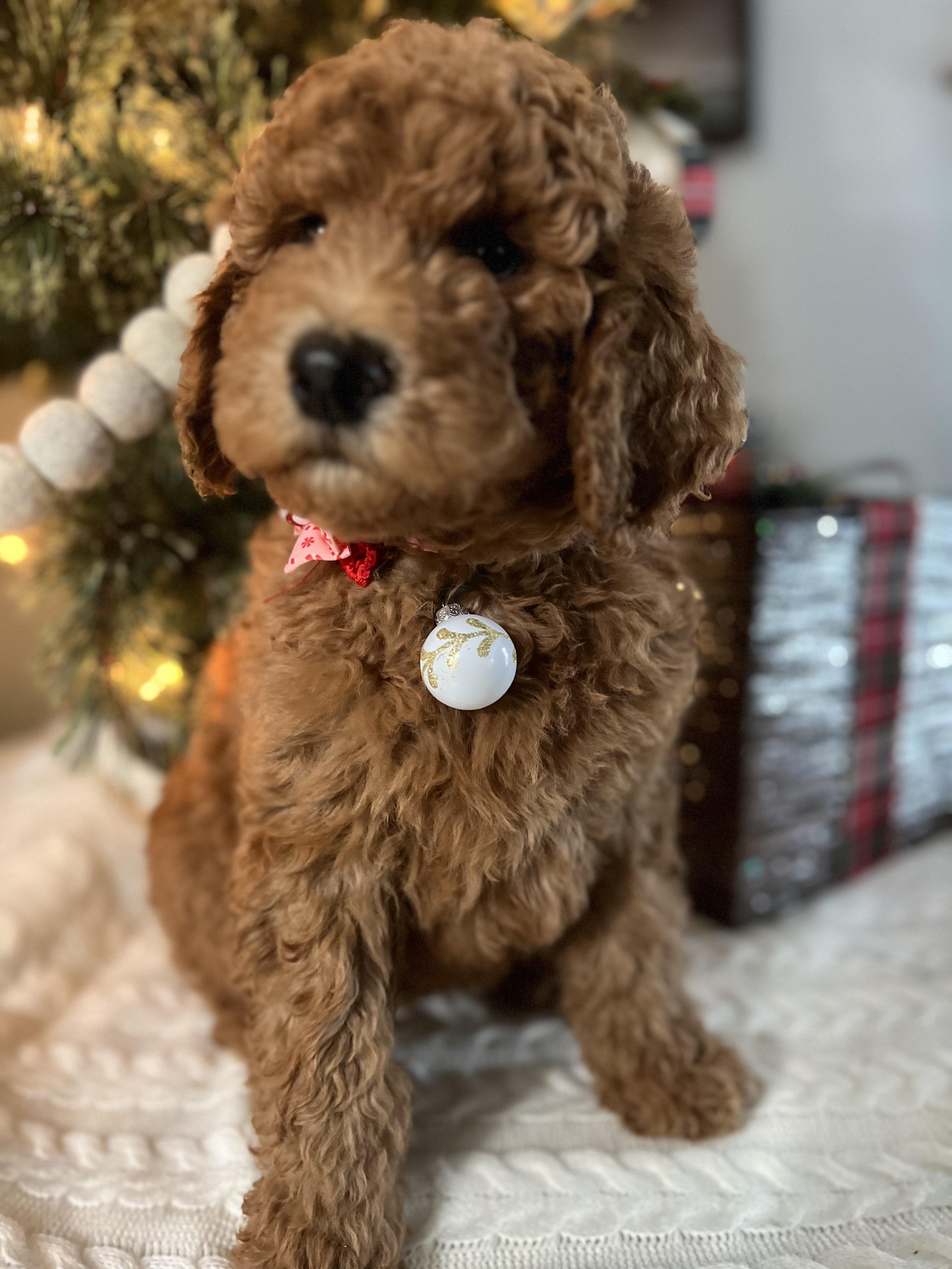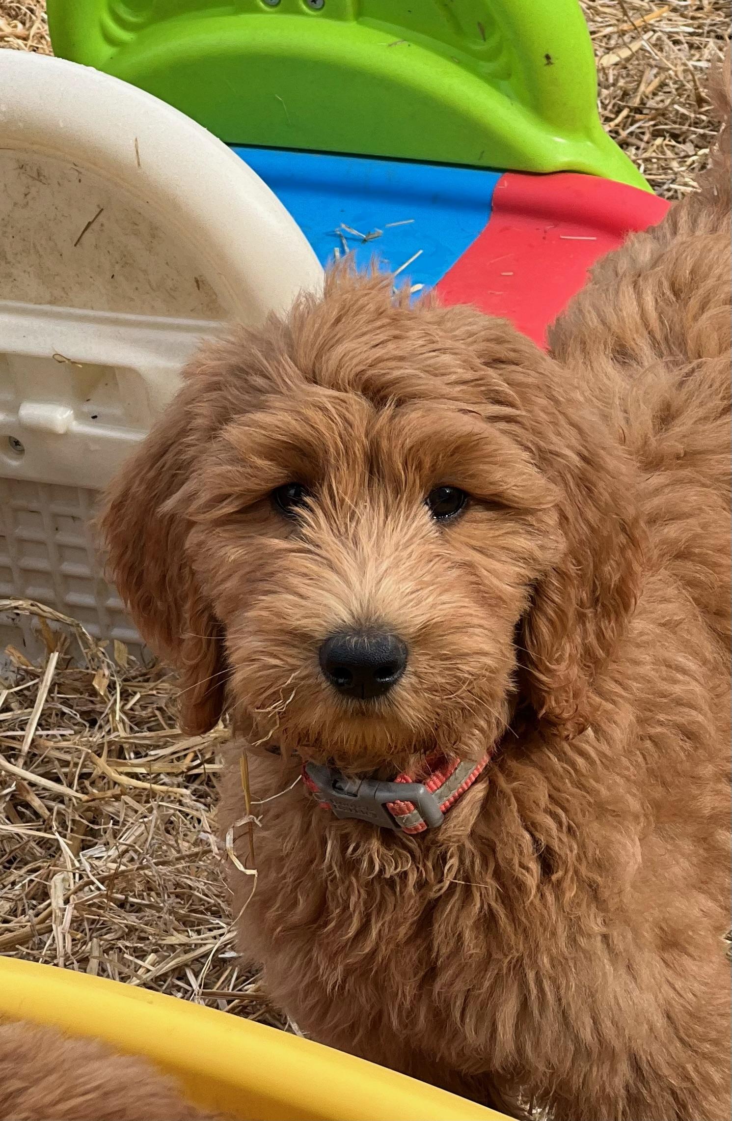 Our Poodle puppies include apricot, cream, and red. Goldendoodle puppies include cream, apricot, red, and parti. Colors will vary depending on the parent dogs.