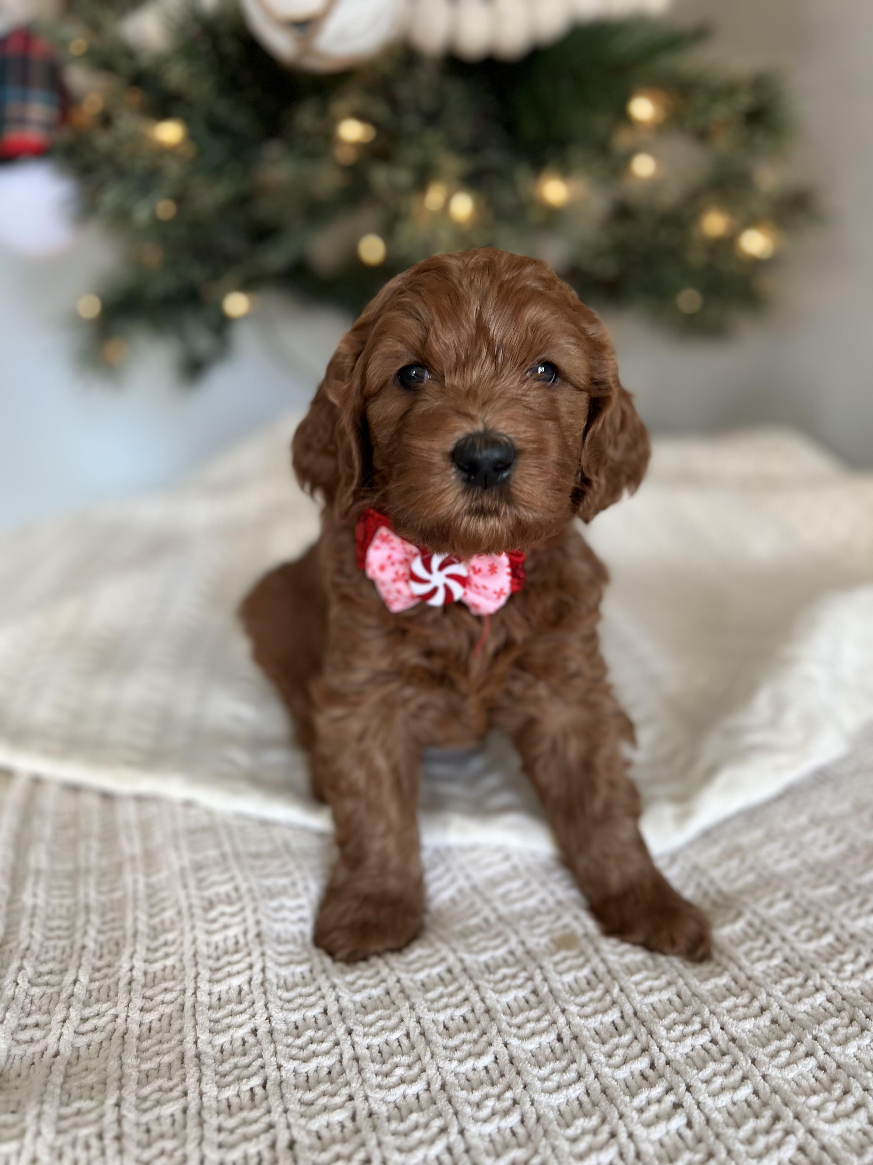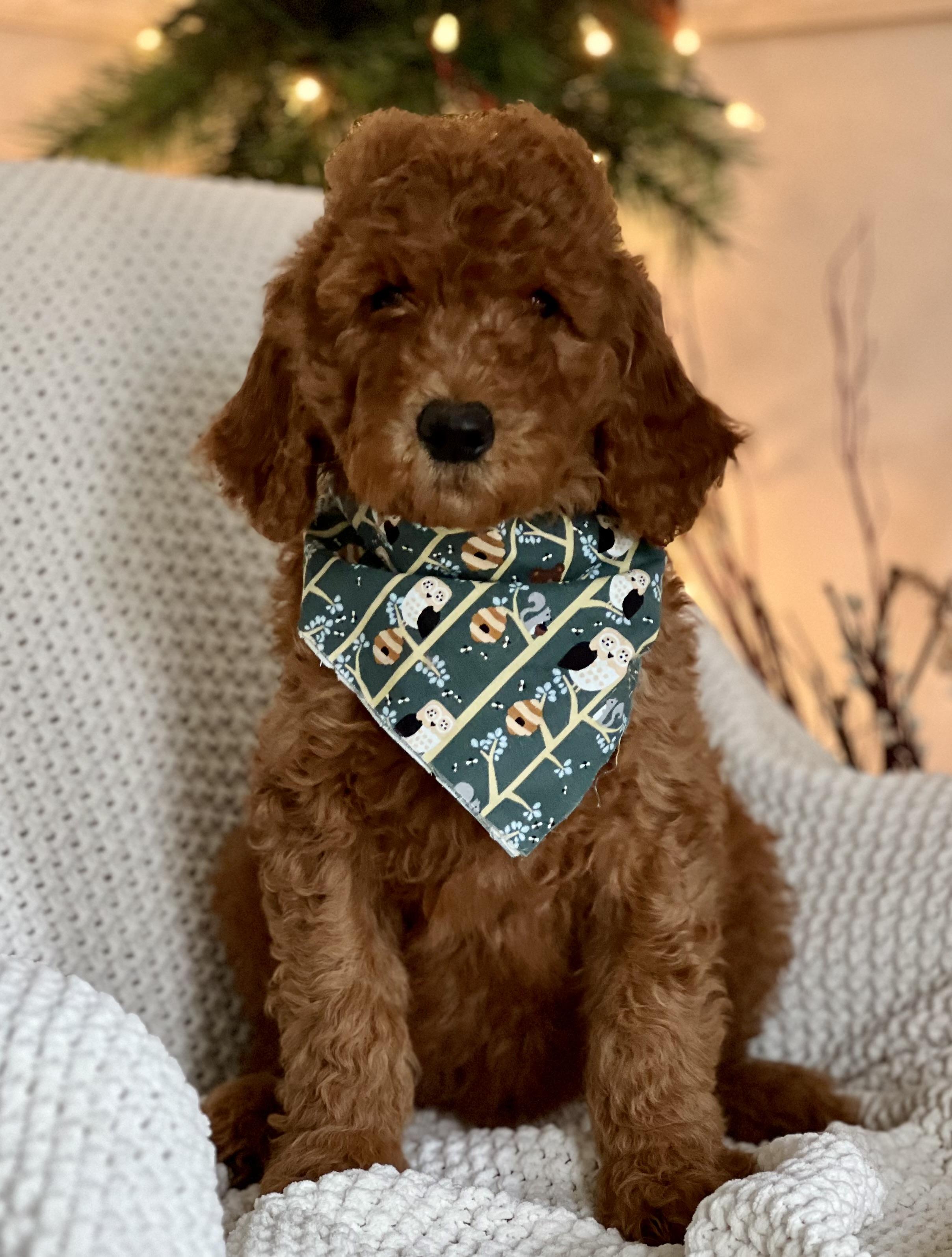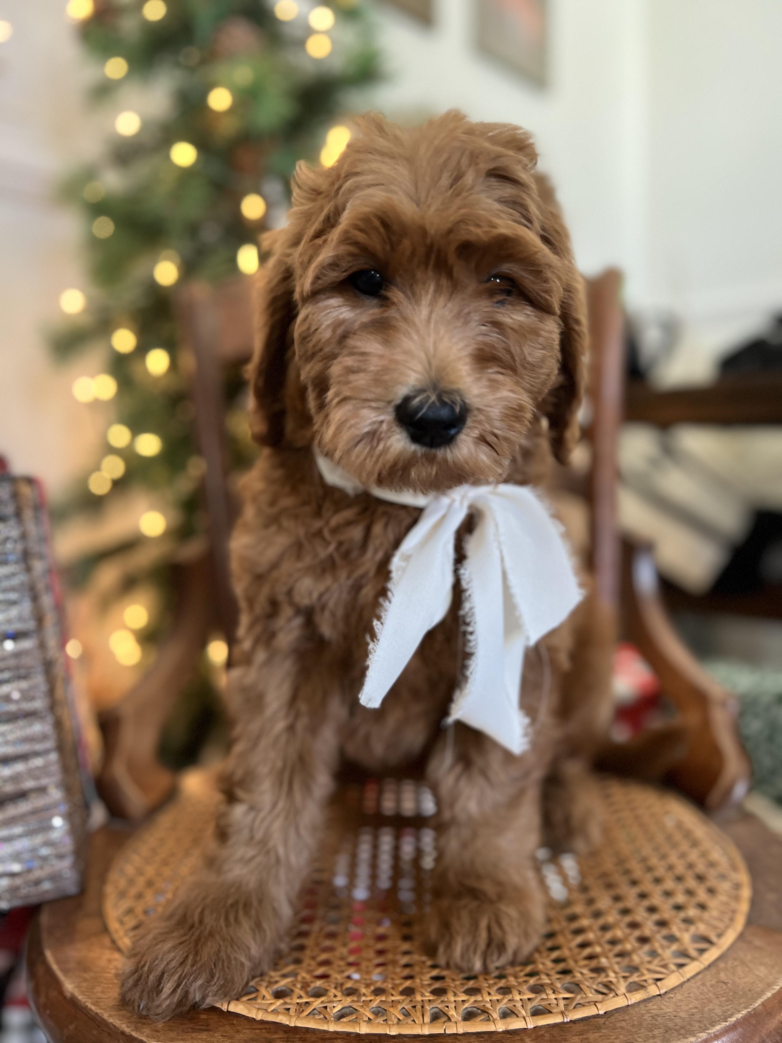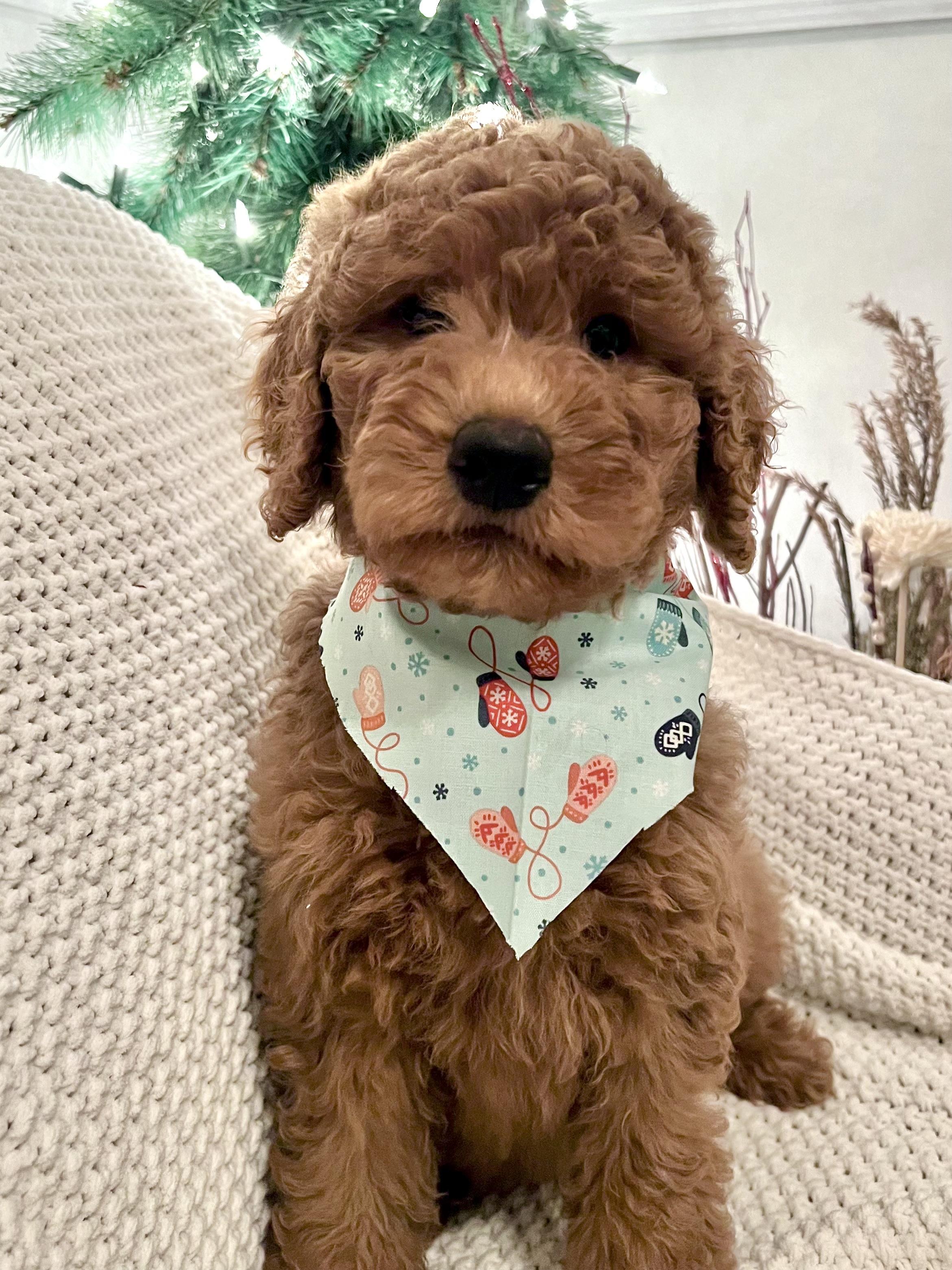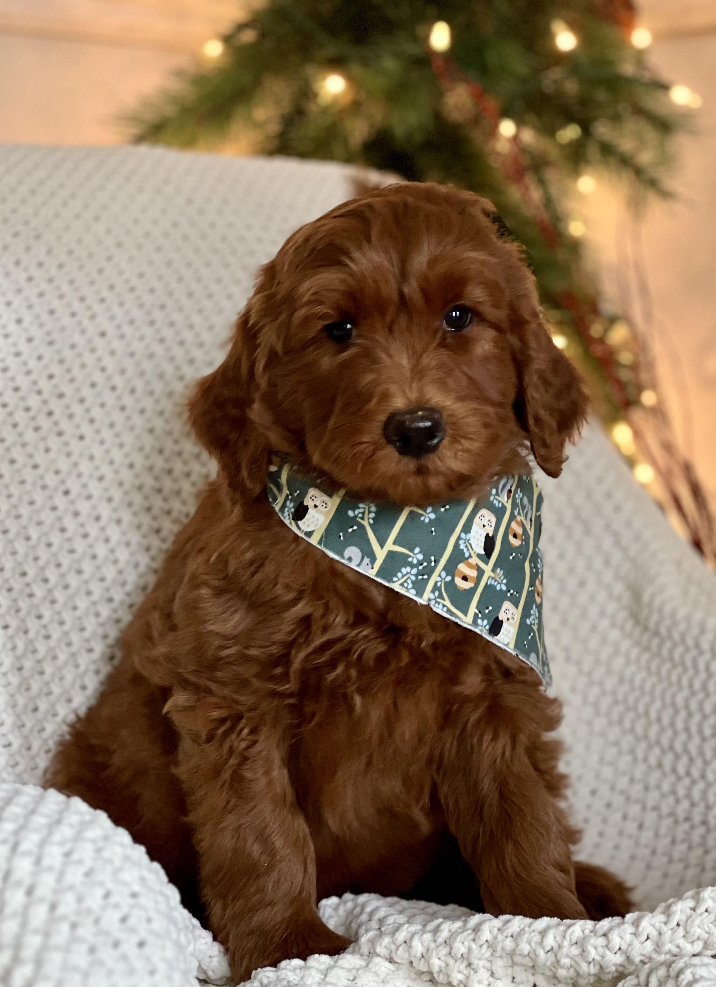 Our Poodle puppies include apricot, cream, and red. Goldendoodle puppies include cream, apricot, red, and parti. Colors will vary depending on the parent dogs.