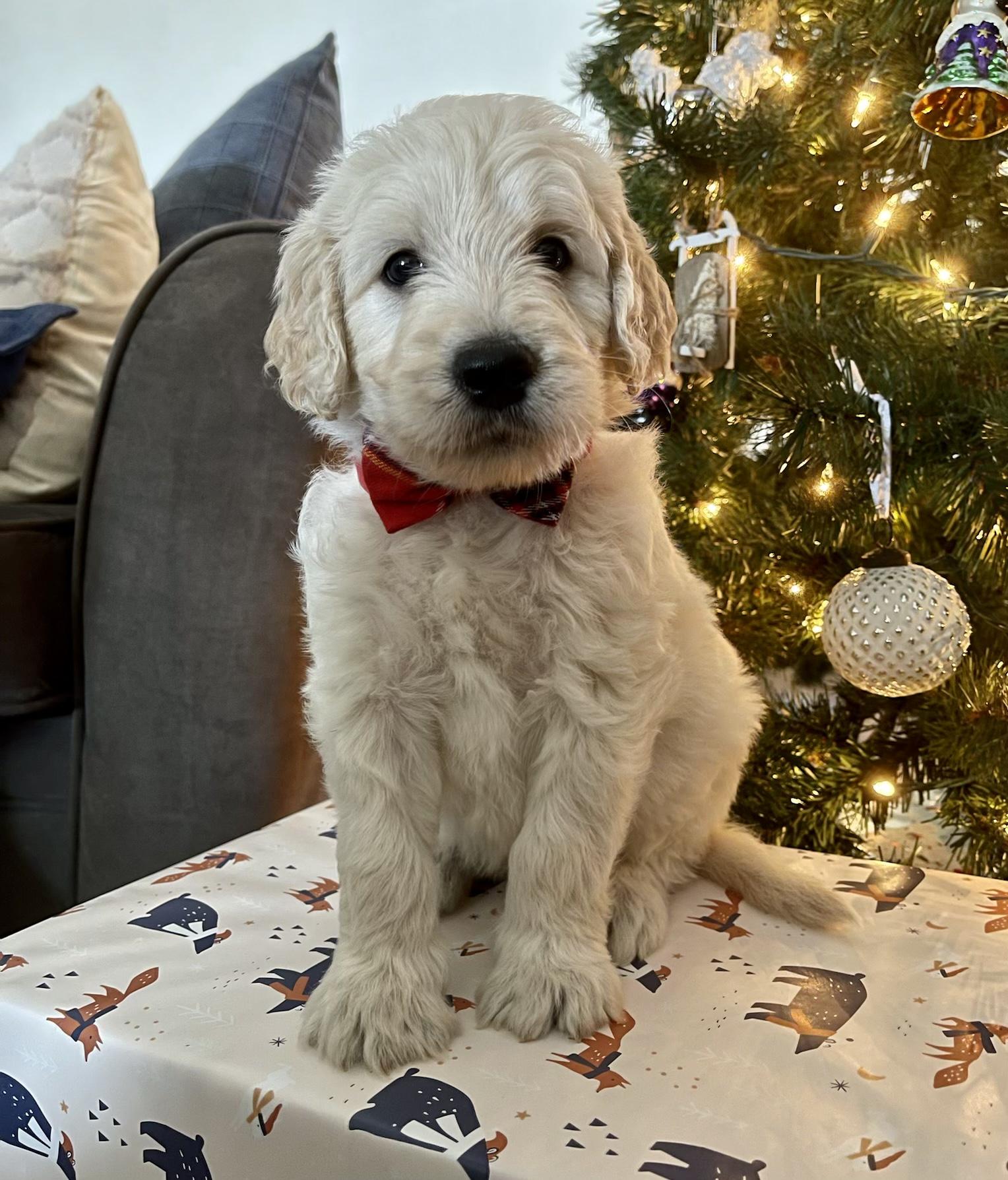 Flora is a female Goldendoodle. Carefully selected as a great representative of her breed, Holly decided to make her part of their program. Holly has passed Good Dog’s screening process, which involved a review of their breeding practices, environment, and the mental and physical health of their dogs.