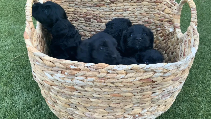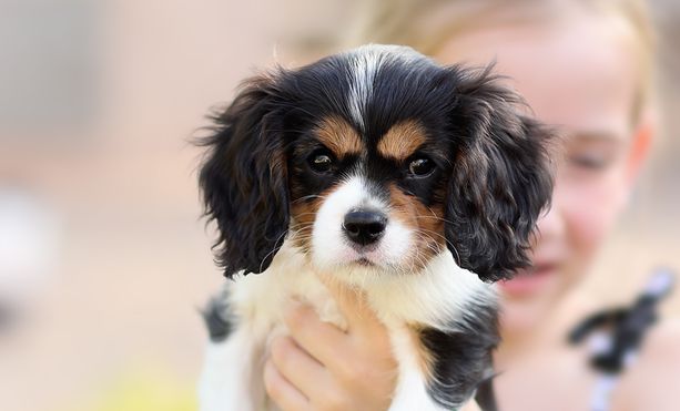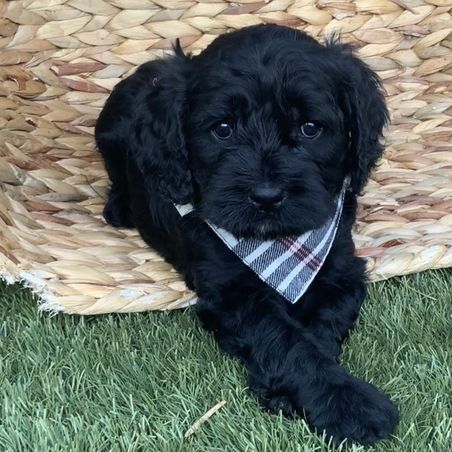 Our Cavalier King Charles Spaniel puppies include blenheim, ruby, and tri-color. Cavapoo puppies include black and white, black, and apricot. Colors will vary depending on the parent dogs.
