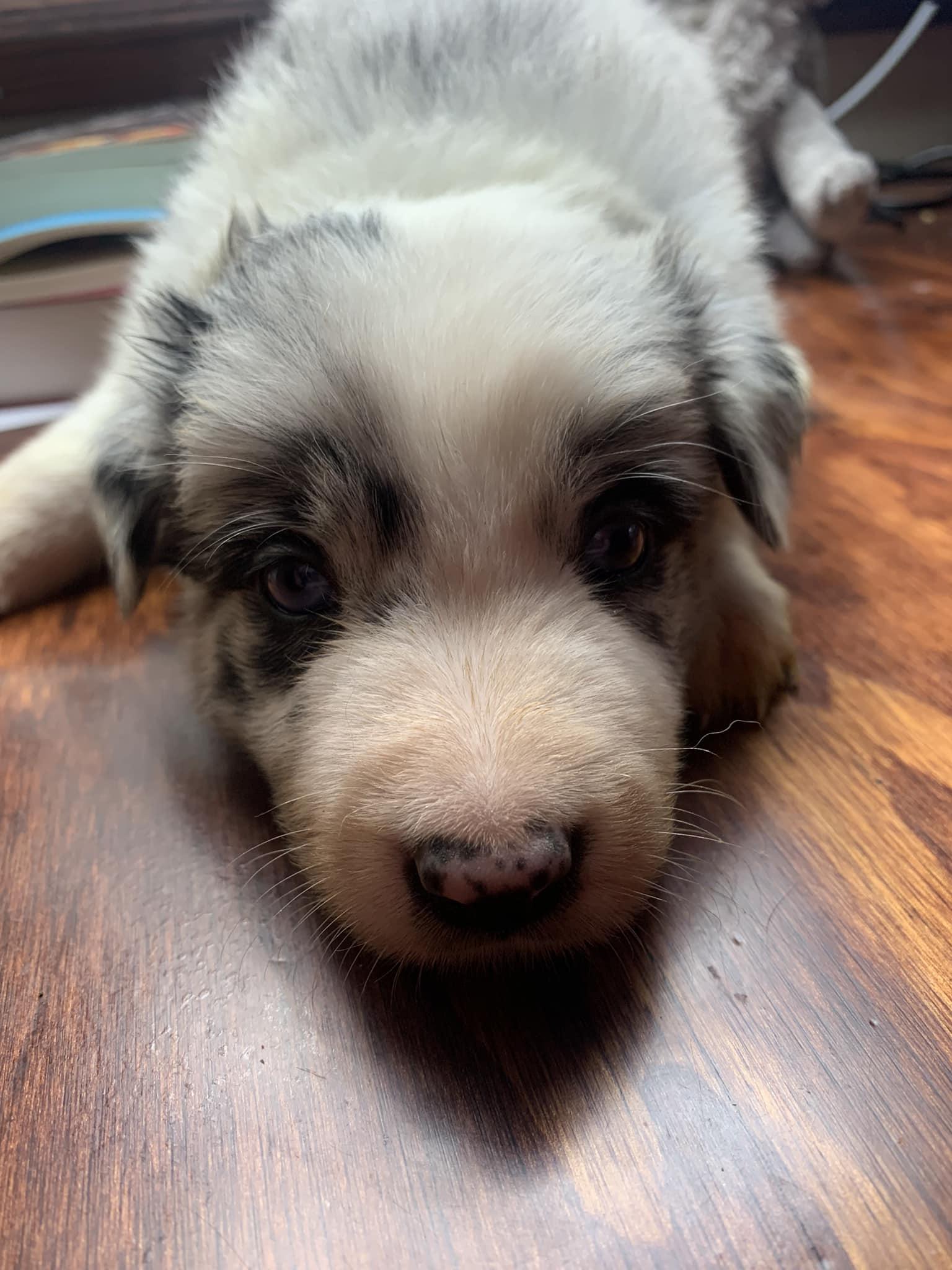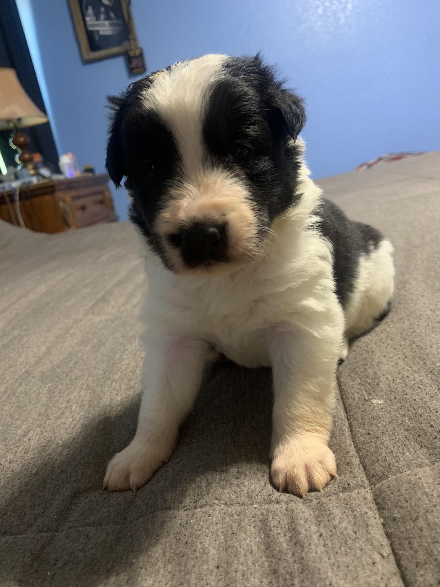 Our puppies include tri-color, blue merle, black, brindle, and white and blue merle. Colors will vary depending on the parent dogs.