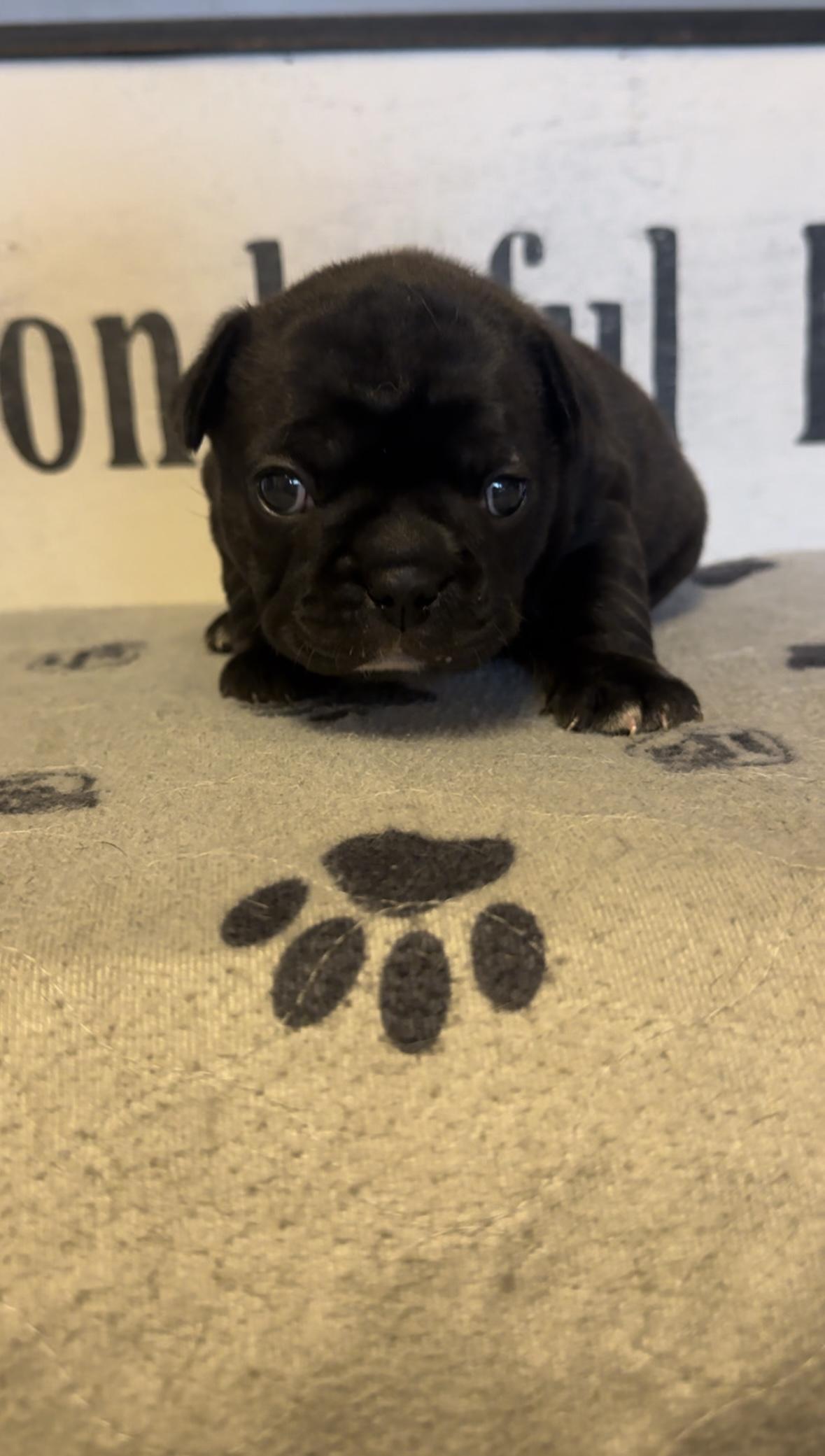 Minnie is a female French Bulldog. Carefully selected as a great representative of her breed, Abigail decided to make her part of their program. Abigail has passed Good Dog’s screening process, which involved a review of their breeding practices, environment, and the mental and physical health of their dogs.