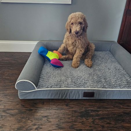 Joey is just the perfect fit for our family. He was well trained and never jumps on us. He listens so well and is just a pleasure. Can't thank Terri enough for all the work and love she put into him.