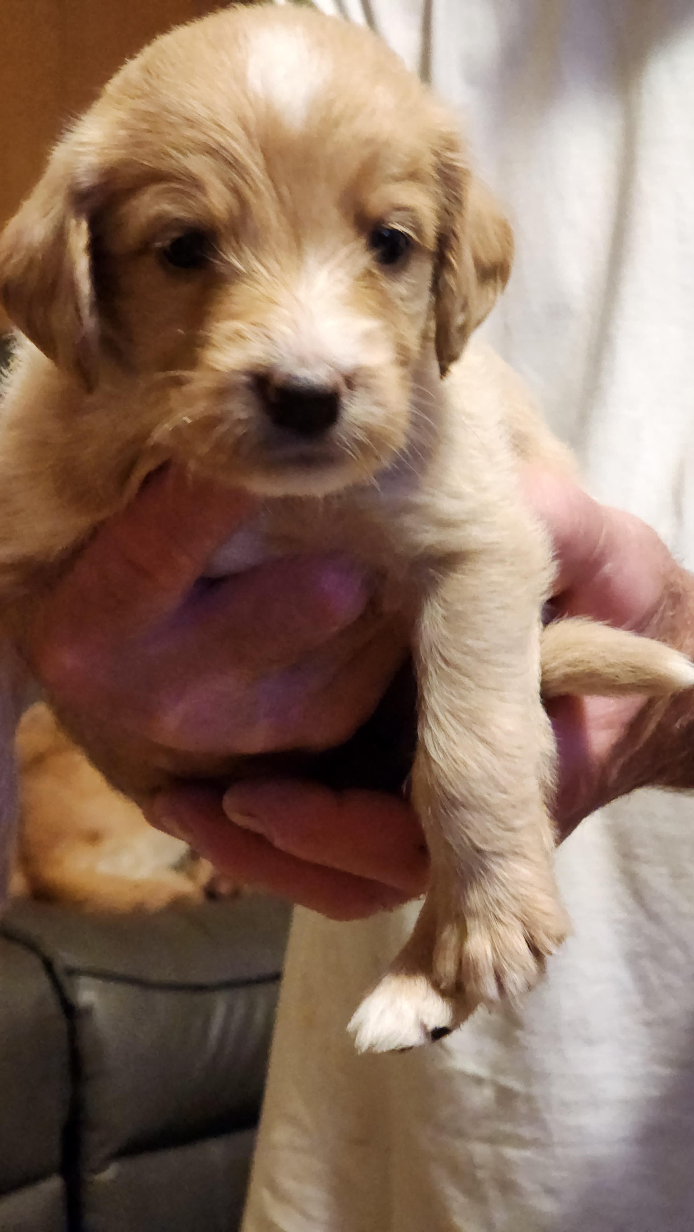 Crystal is 17% Golden 36% Lab and 56% Poodle. Her puppies will have about 7% Golden.