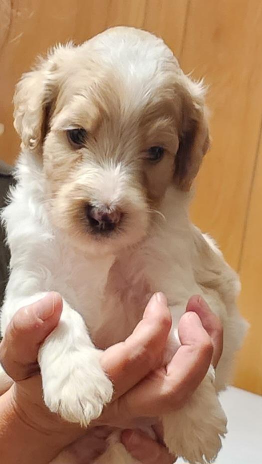 Our Double Doodle puppies include white and brown. Colors will vary depending on the parent dogs.