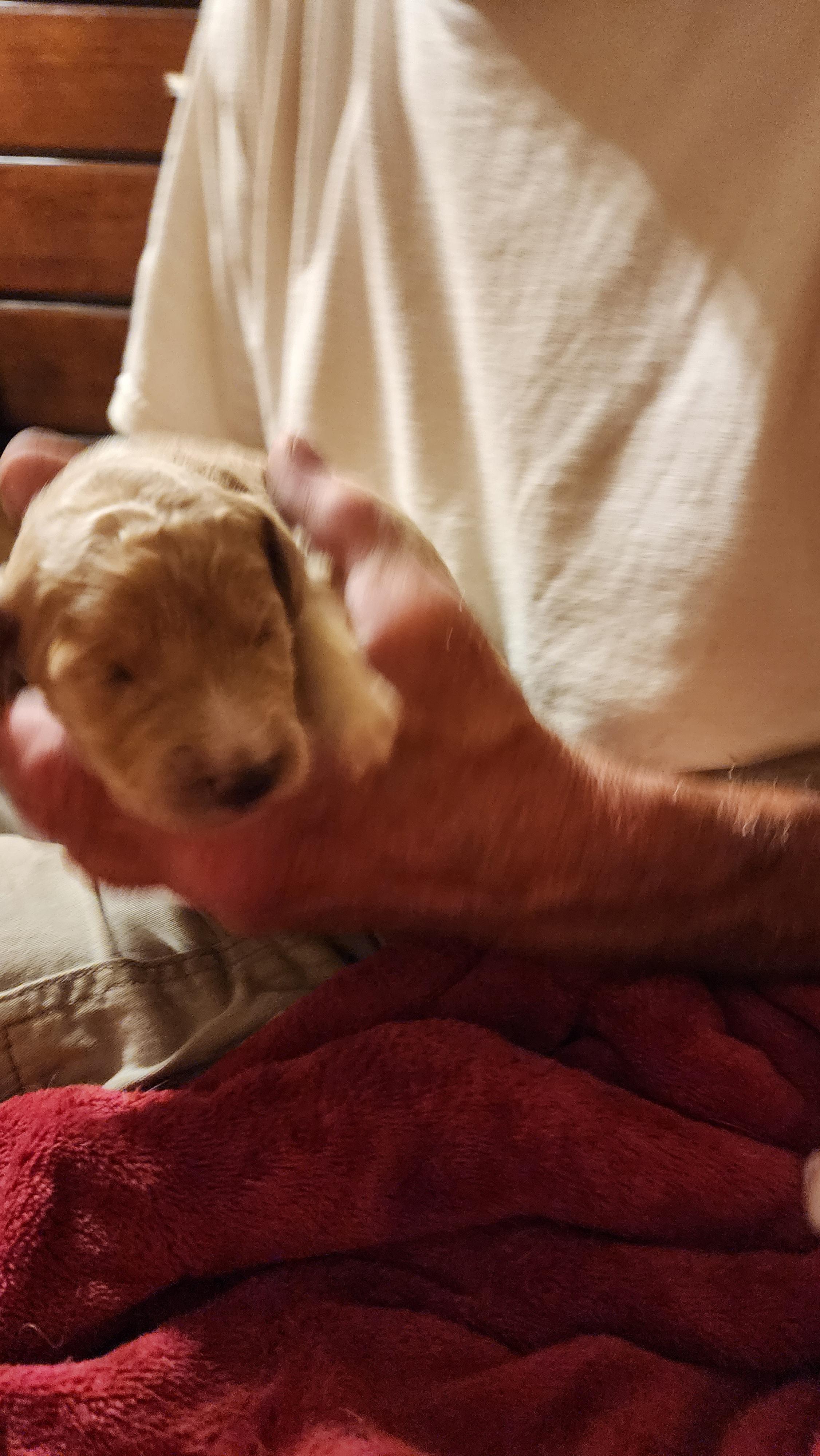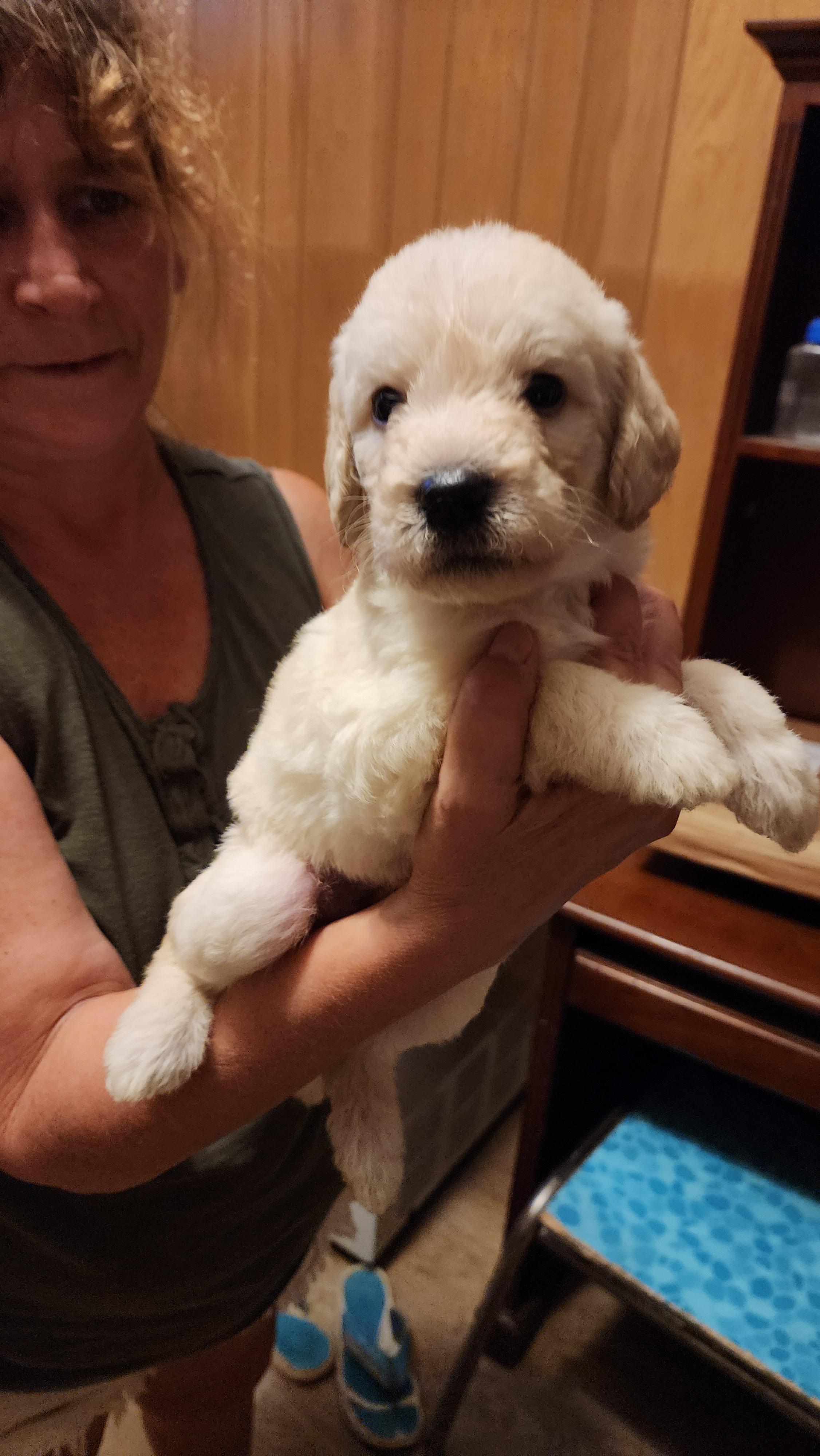Chance is a very sweet and smart Golden Labradoodle that weighs 35 Pounds. She has a calm disposition but also loves to play with her packmates. She's food driven which is great for training and a great mom.