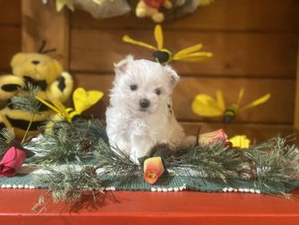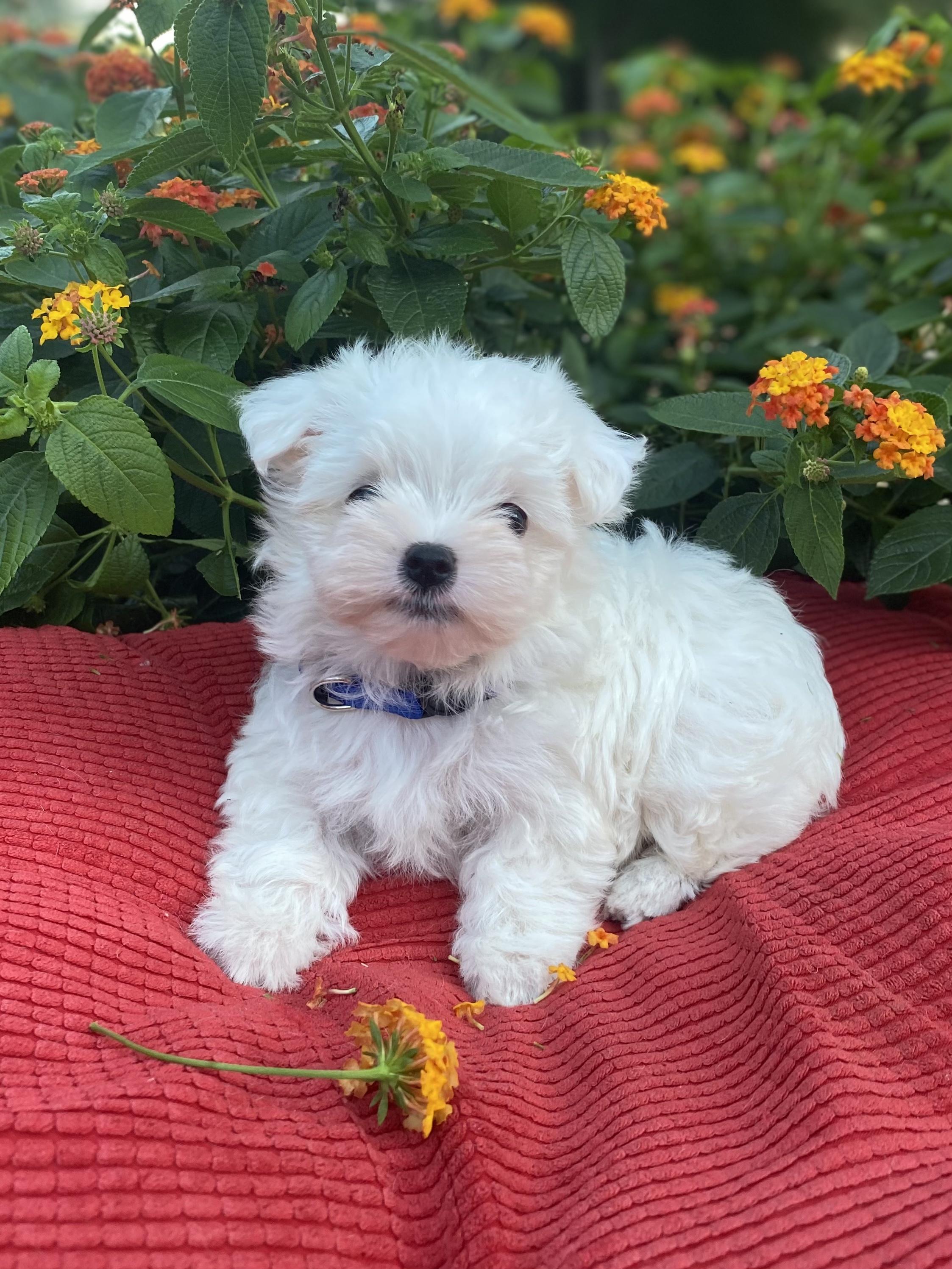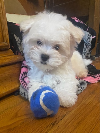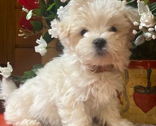 Maltese puppies are white. Colors will vary depending on the parent dogs.